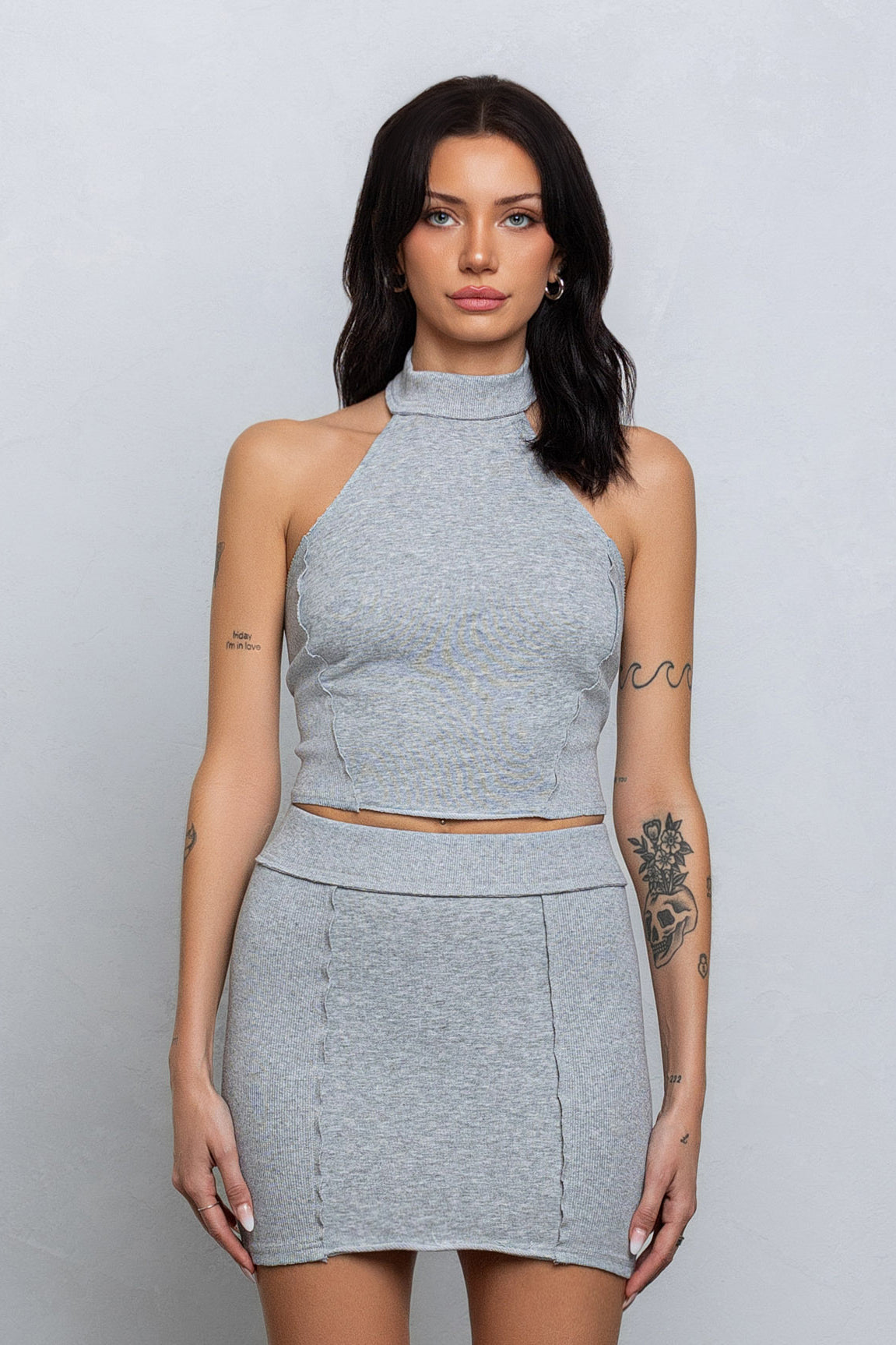 KAYLA FRENCH TERRY HALTER TOP - HEATHER GREY