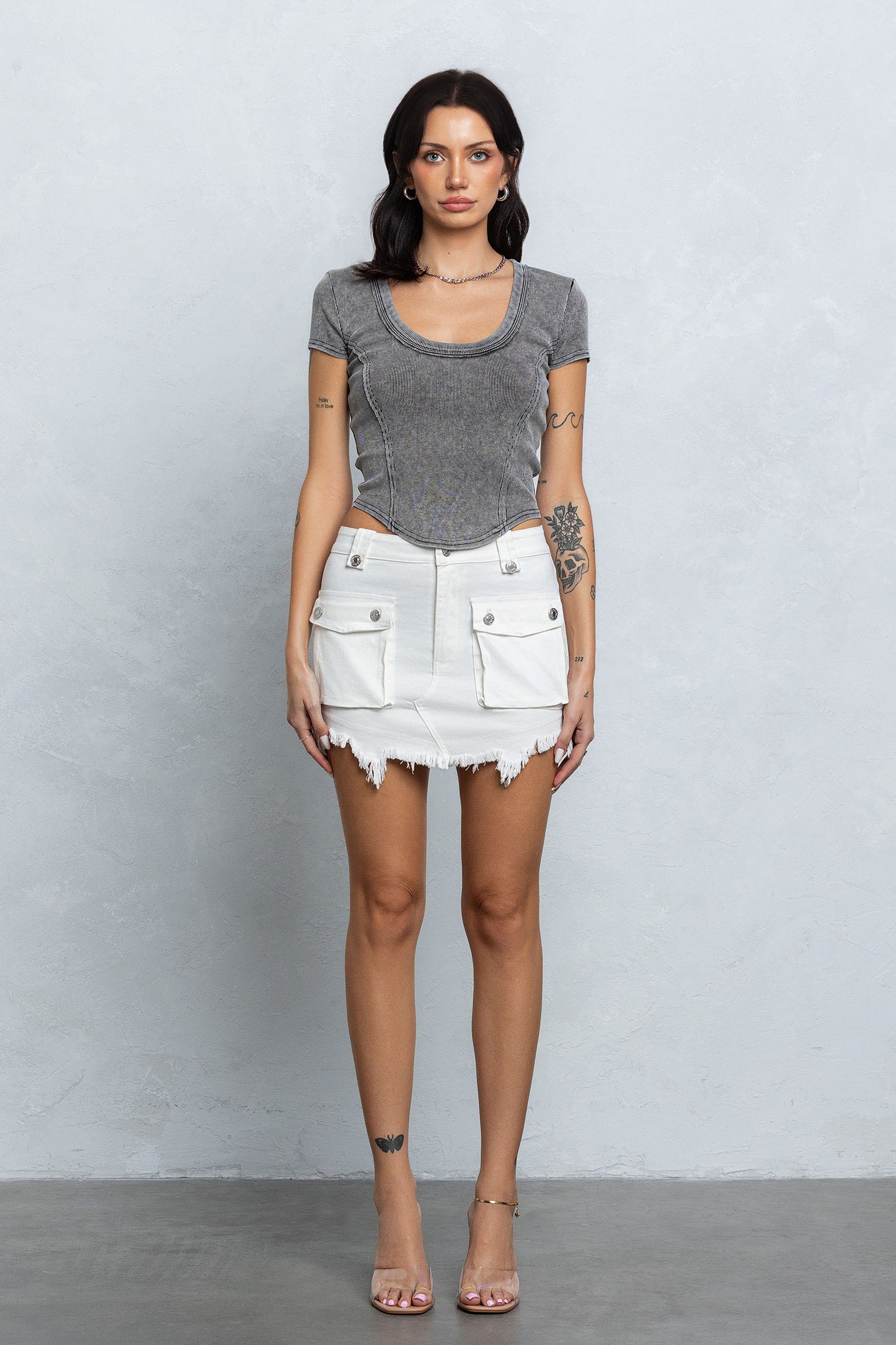 NIKKI FRAYED CARGO MINI SKIRT - WHITE