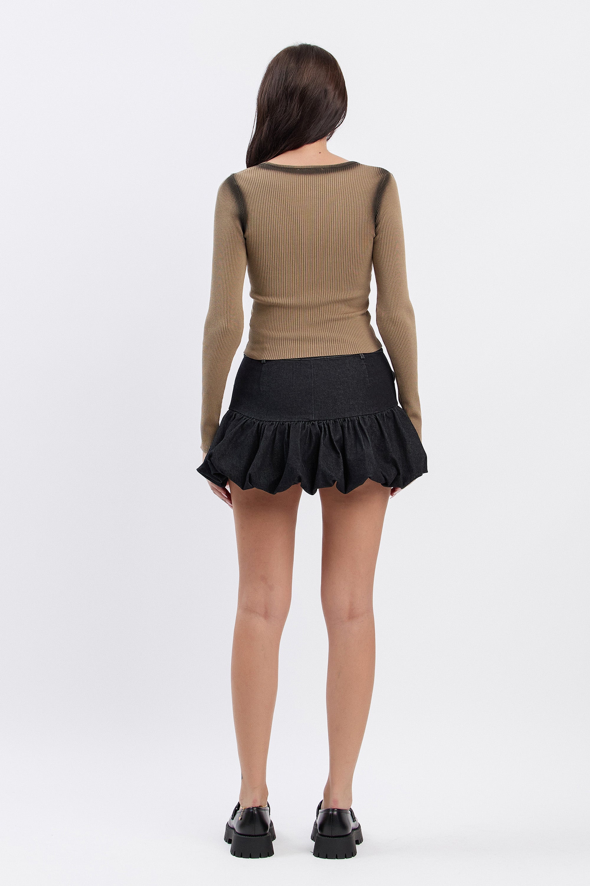 CELIA DENIM MINI BUBBLE SKORT - BLACK DENIM