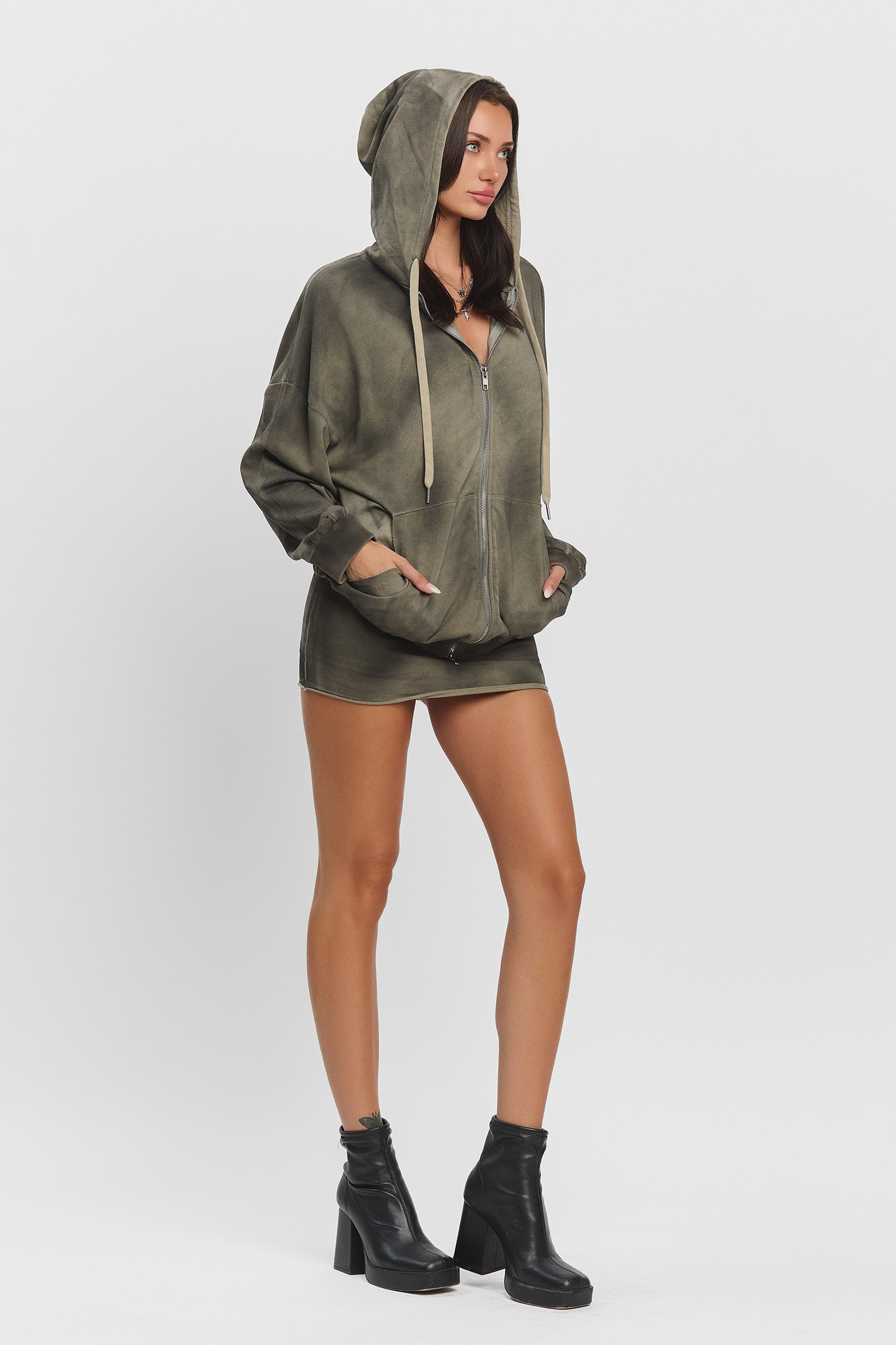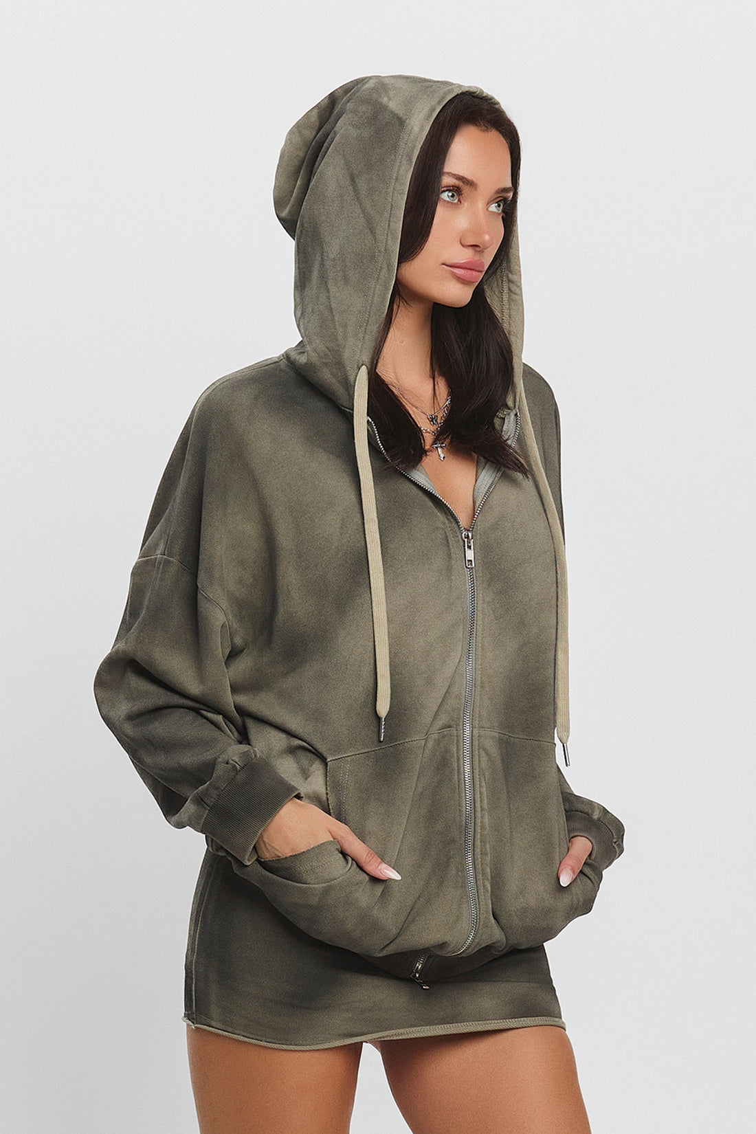 The Dalton washed zip-up hoodie is crafted from thick French terry fabric with a distinct washed effect. Designed with an oversized fit, it features a two-way zipper and front pockets for both style and functionality.