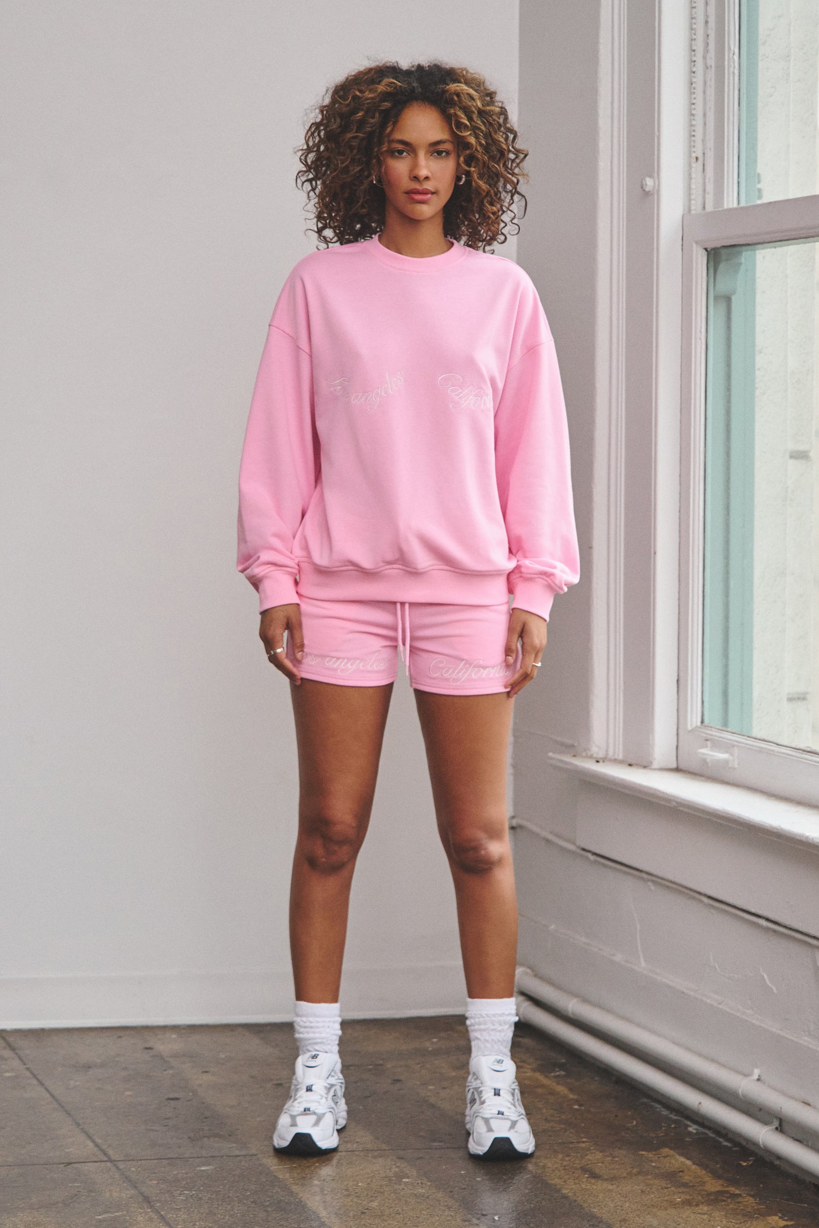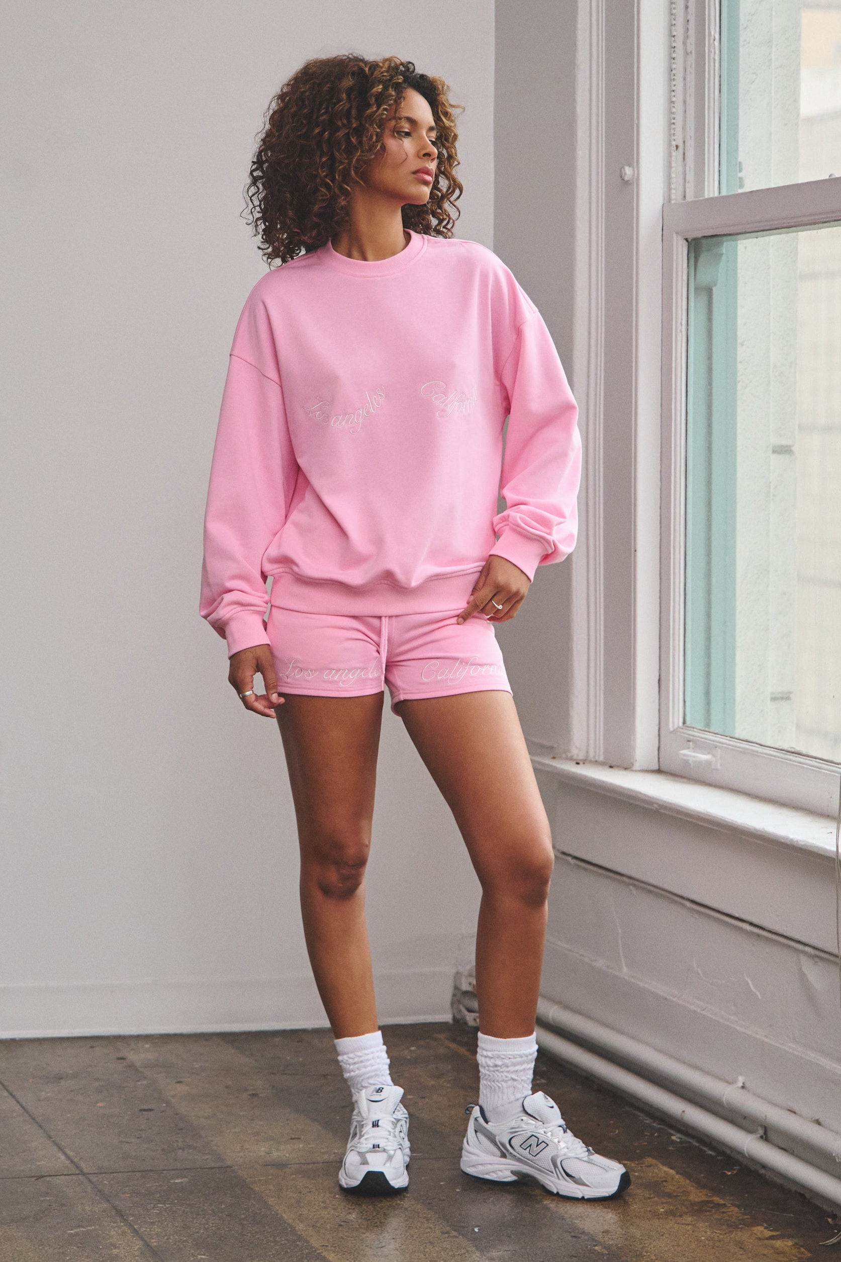 The Los Angeles shorts is made from soft French terry fabric for a comfortable, relaxed fit. It showcases a casual silhouette with embroidered lettering, an elastic waistband, a drawstring, and front side pockets for added convenience.
