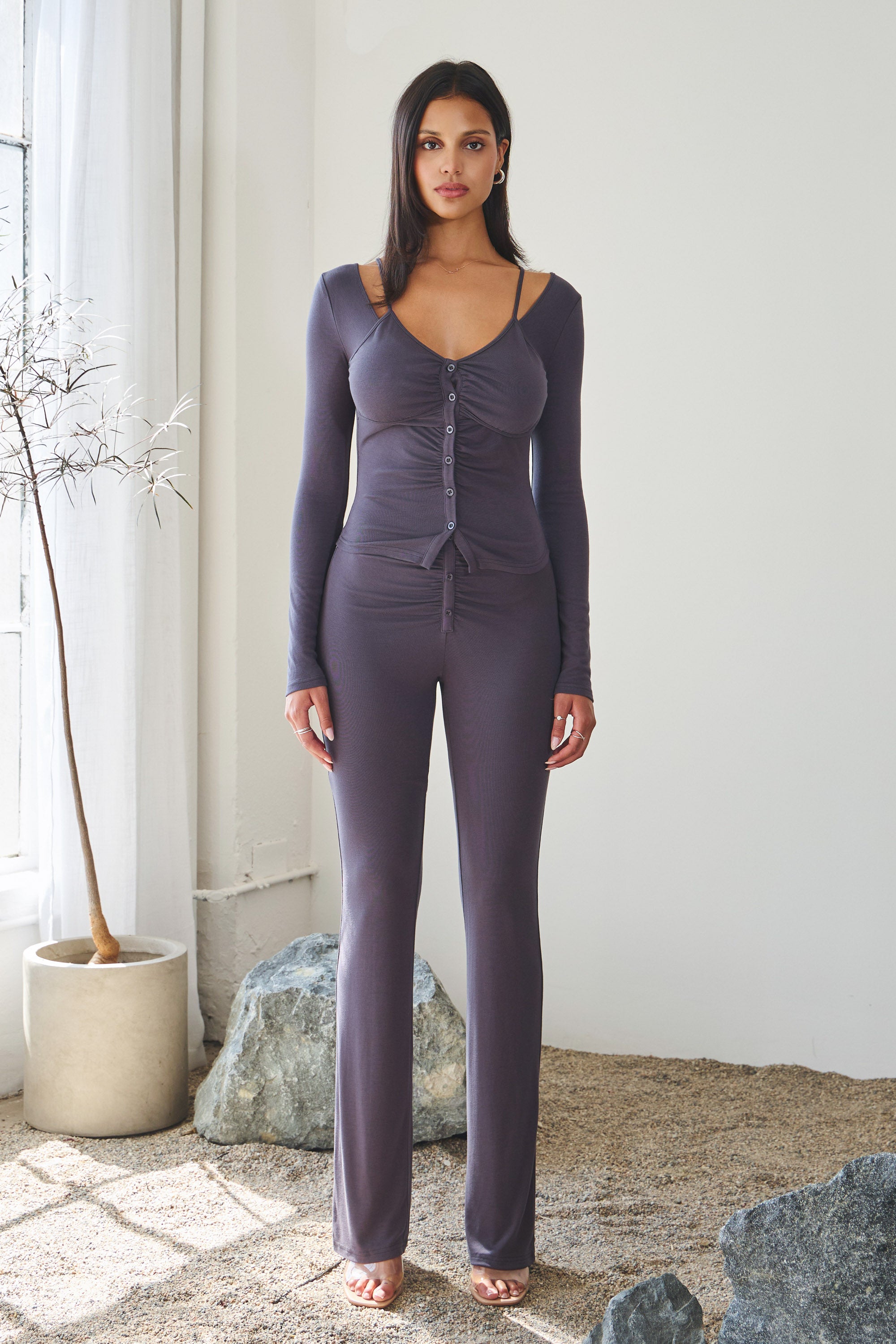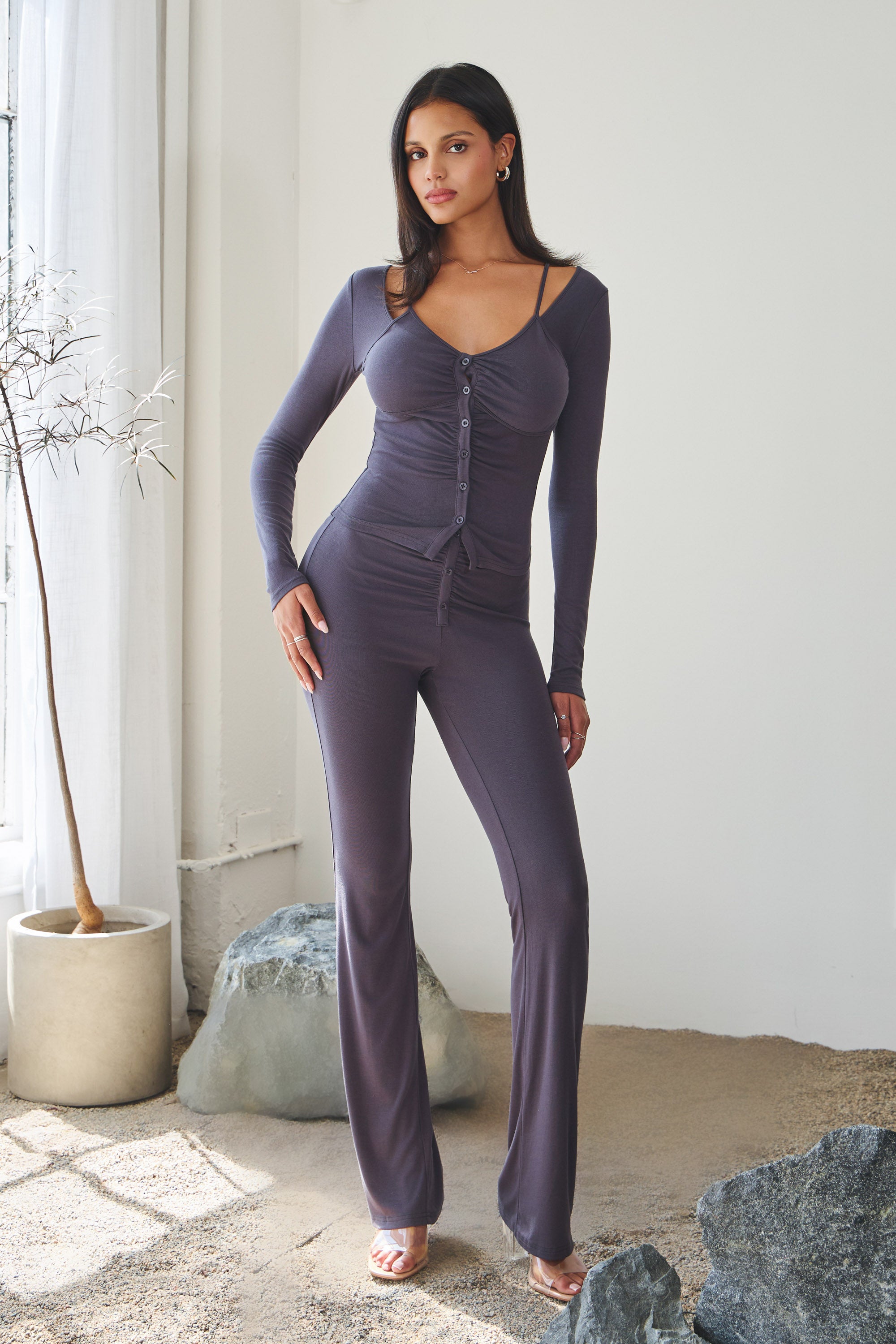 NYX SOFT JERSEY RUCHED DETAIL PANTS- CHARCOAL