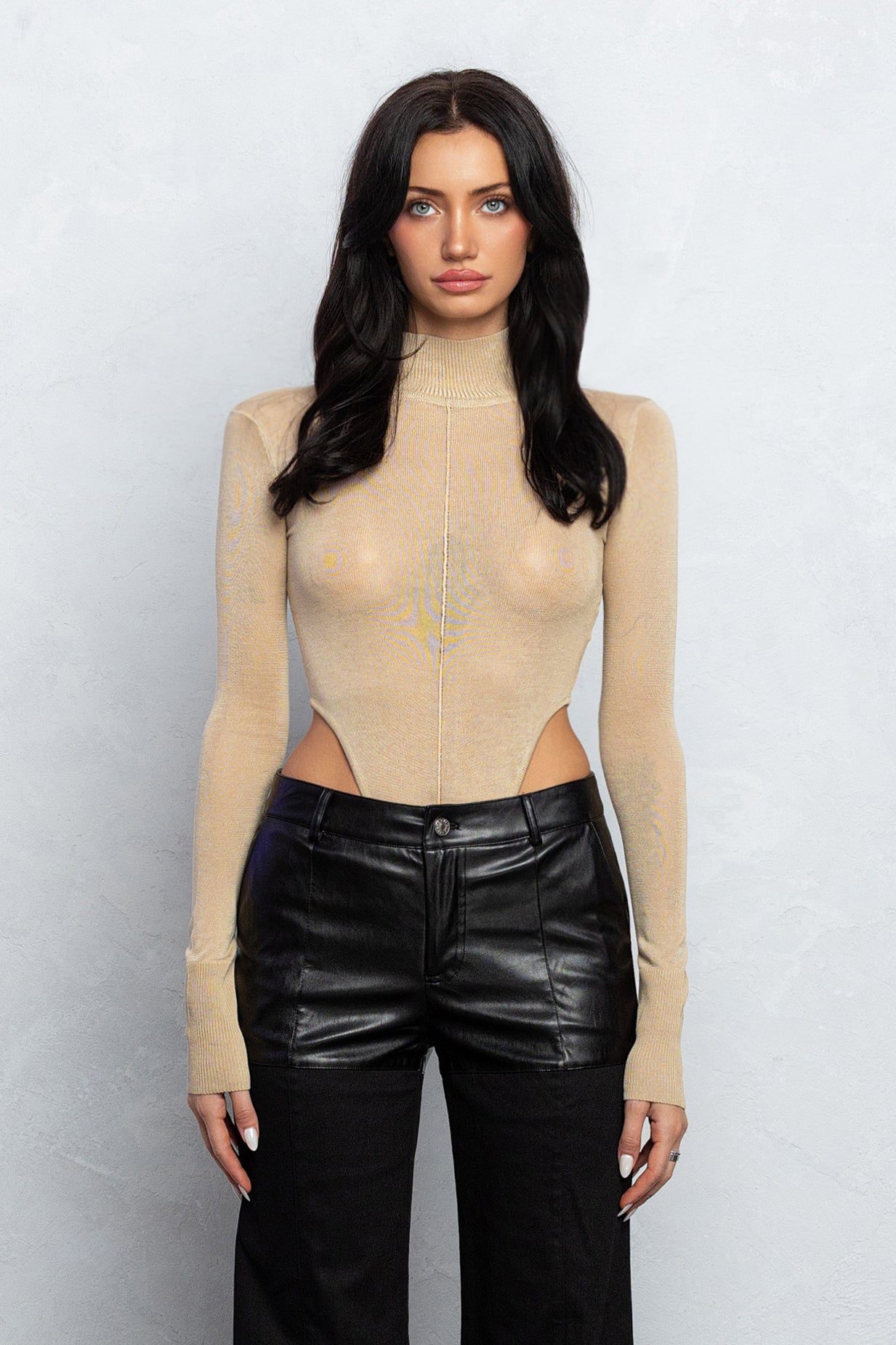 The Chlo bodysuit is designed from a thin knit viscose material. It features a ribbed mock neck contrast with long sleeves that can be easily layered. This simple body is made for a timeless look that can be worn all seasons long.