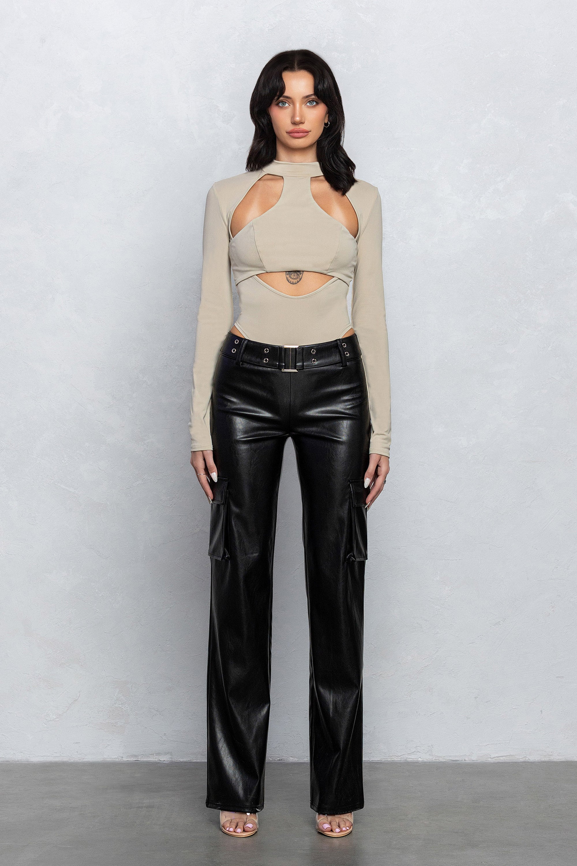 LEXA CUT-OUT BODYSUIT - STONE BEIGE