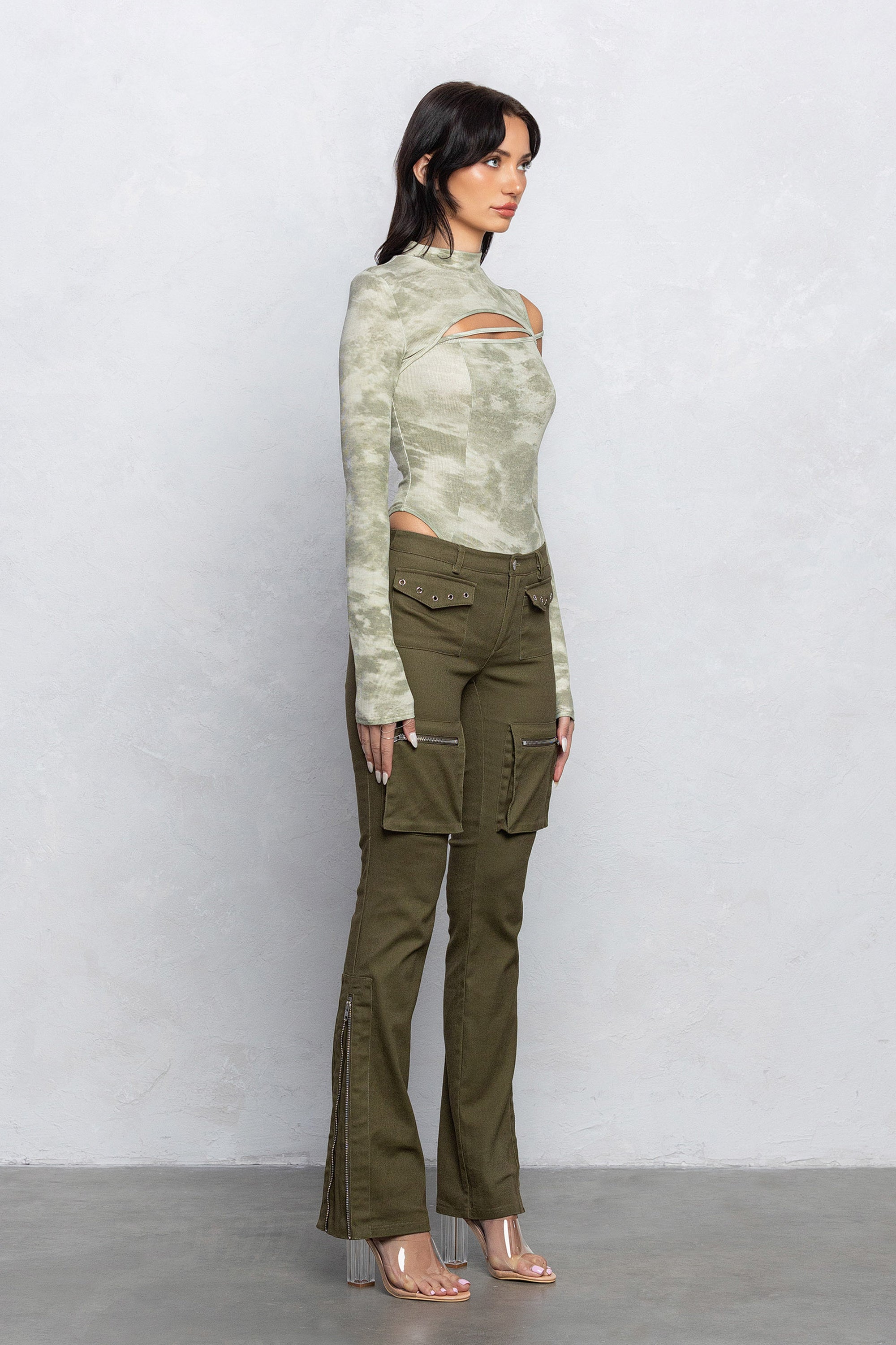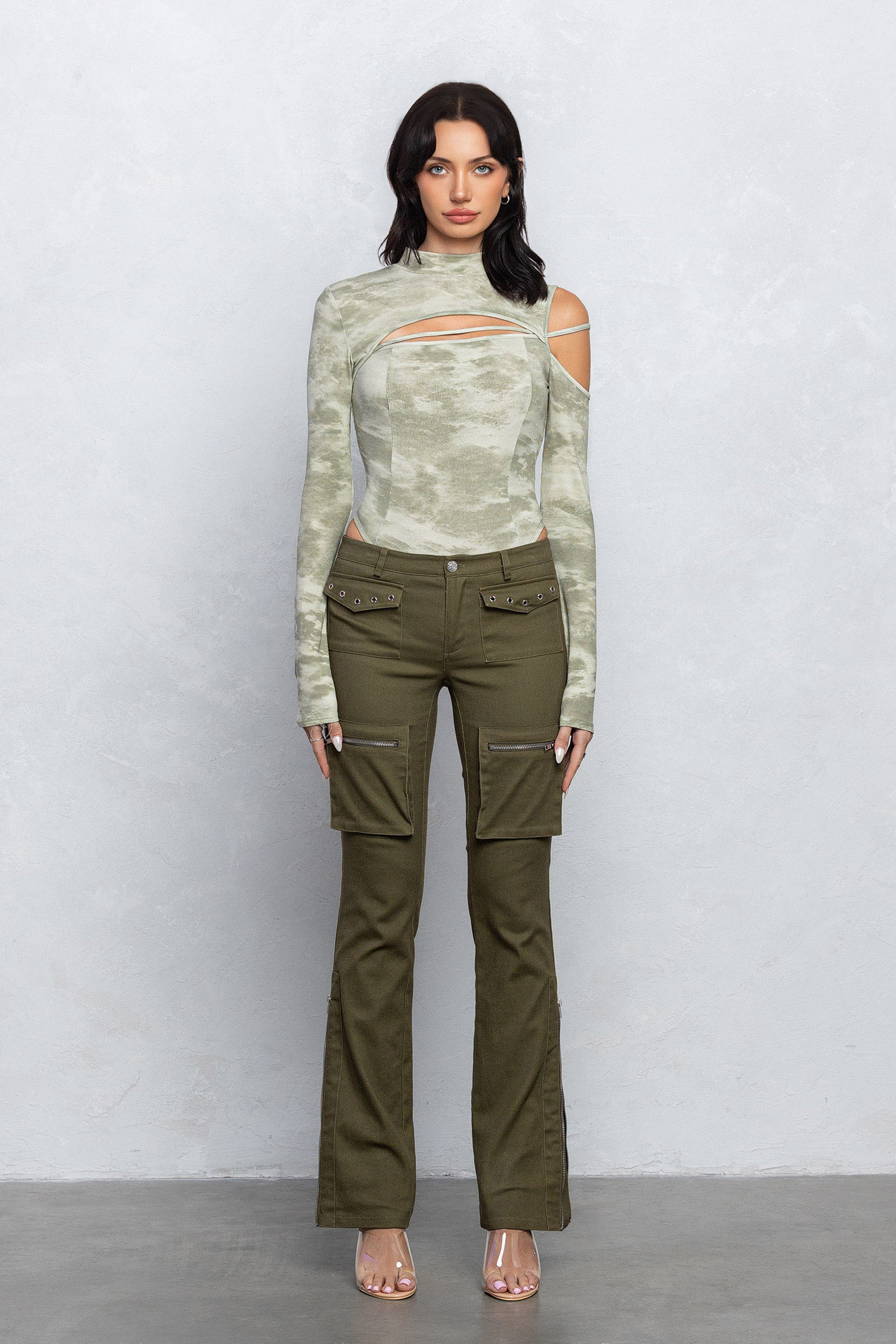 SHARA CUT OUT LONG SLEEVE BODYSUIT - OLIVE