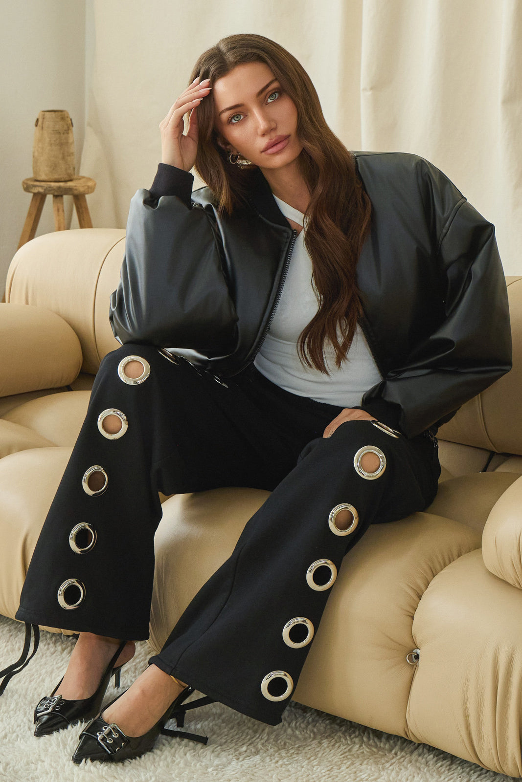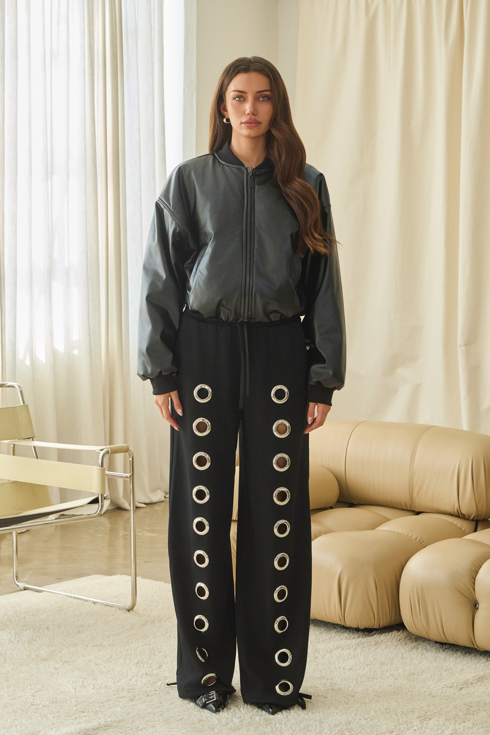 XENA SWEATPANTS W/ OVERSIZE GROMMET DETAILS - BLACK