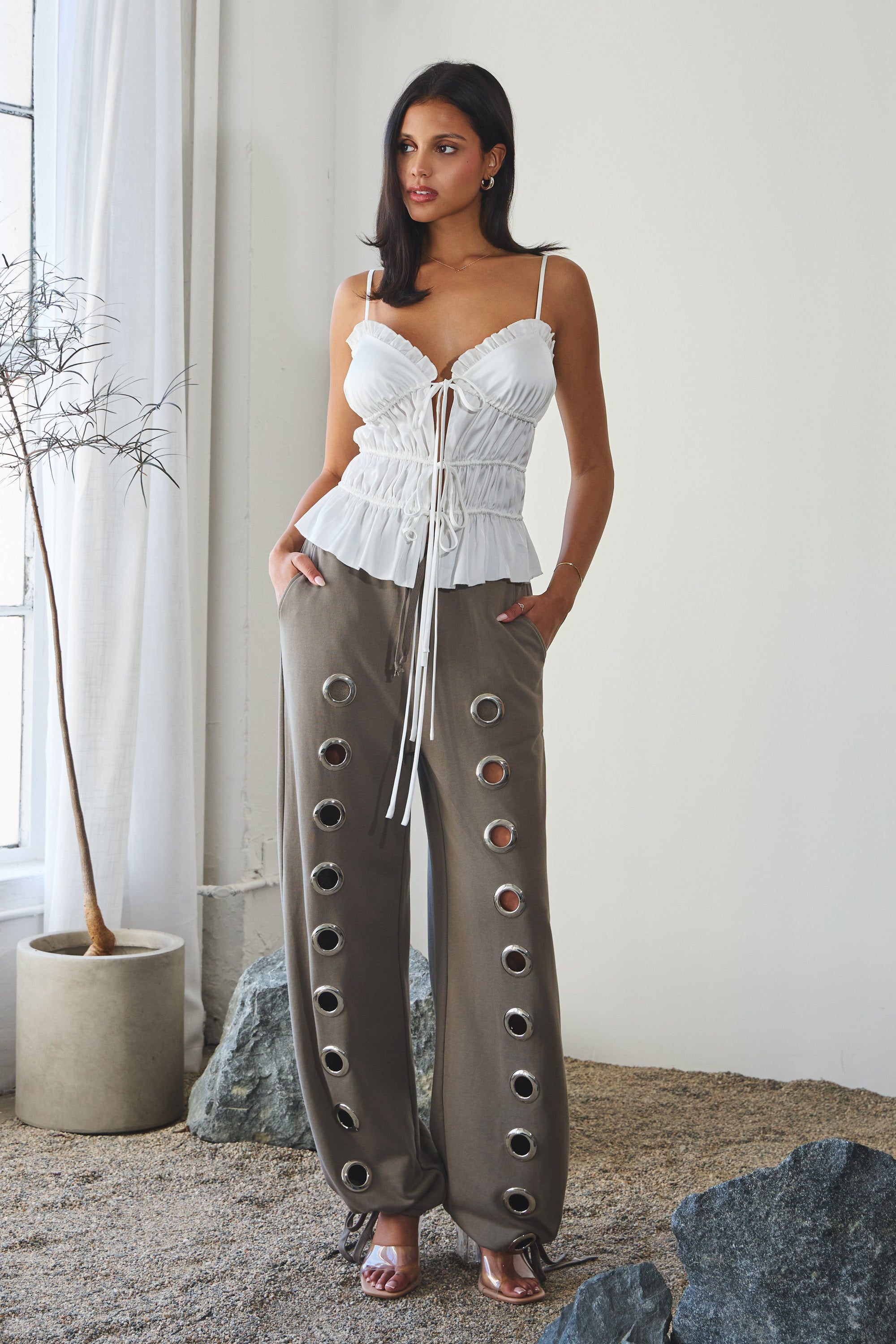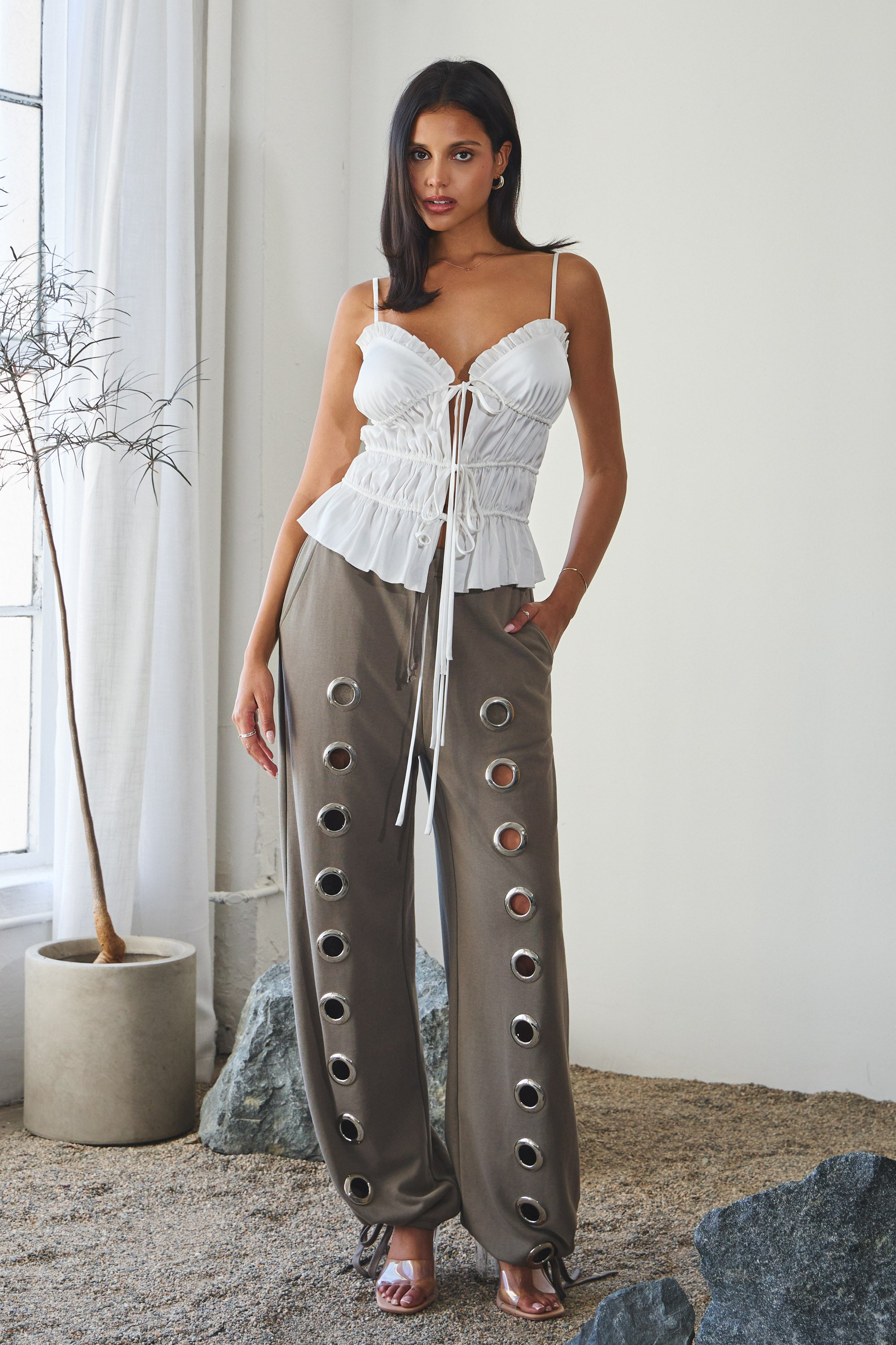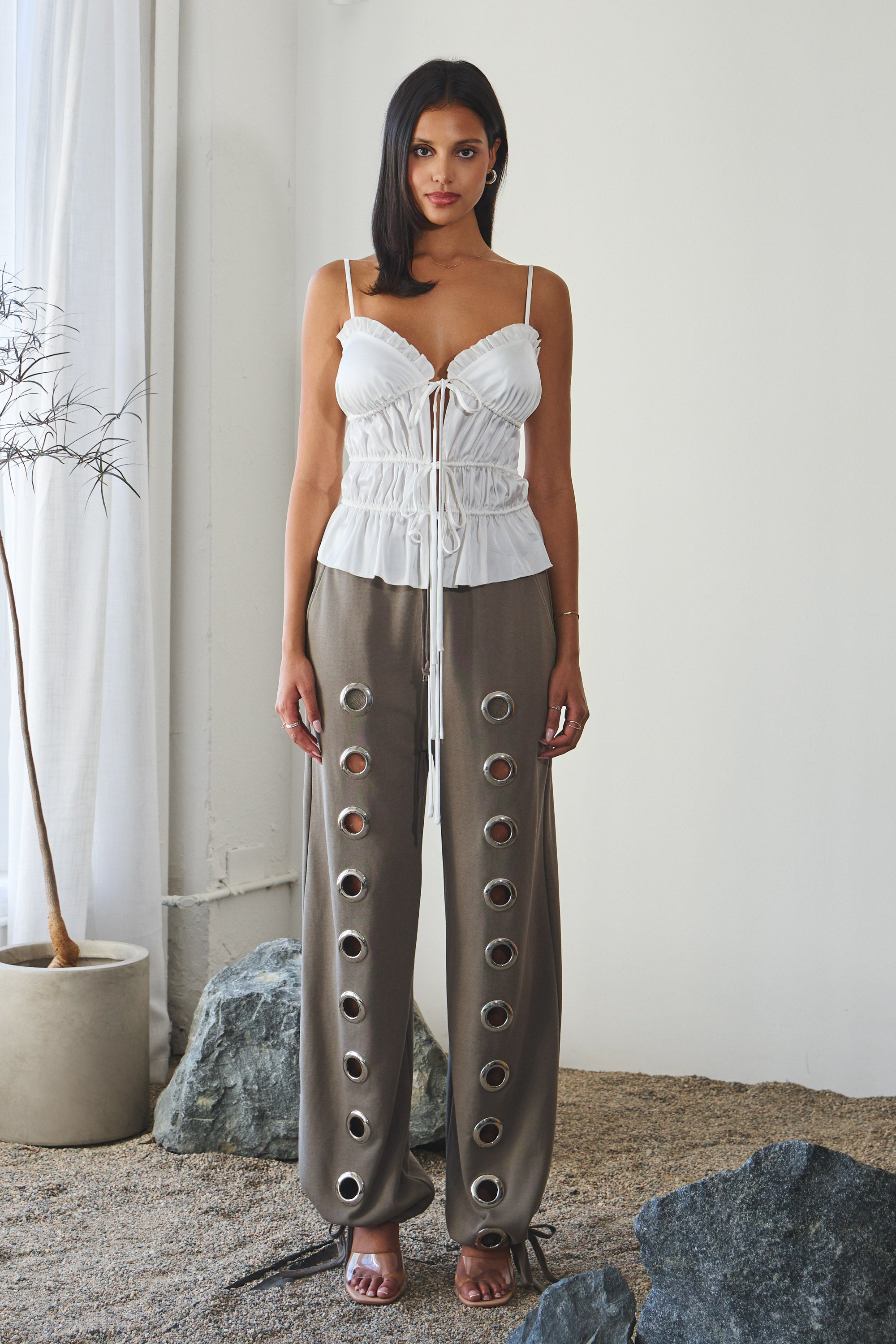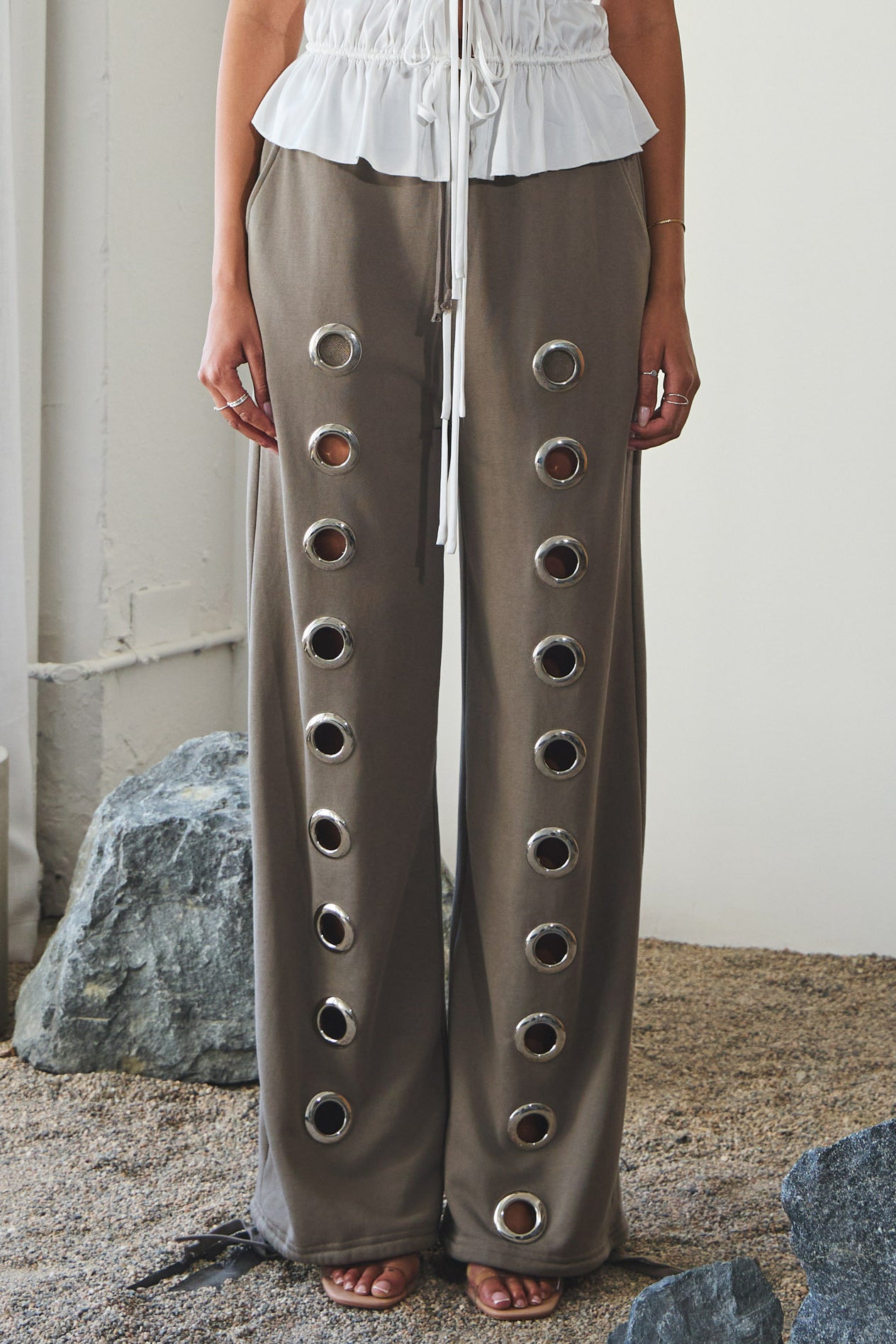 XENA SWEATPANTS W/ OVERSIZE GROMMET DETAILS - ASH
