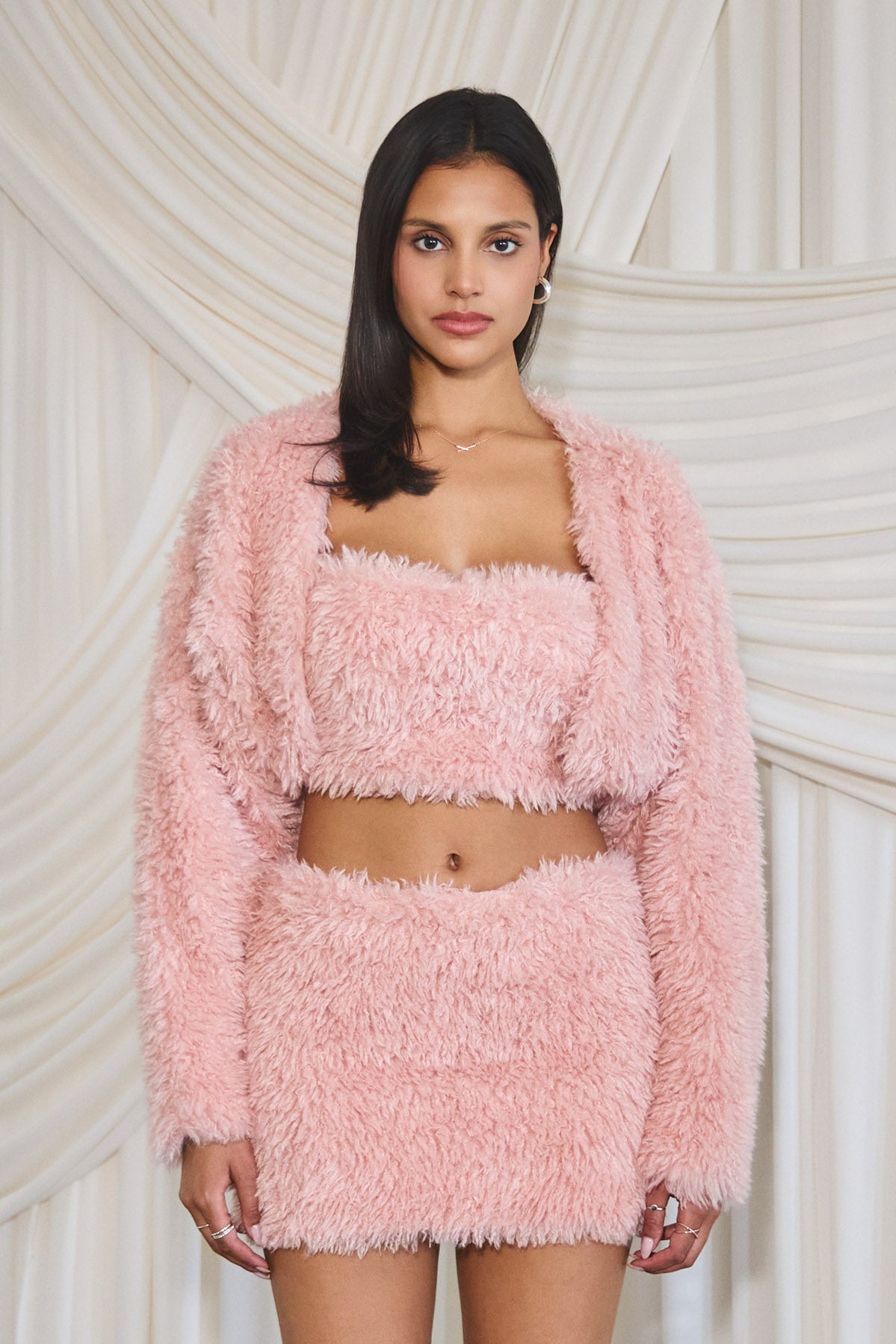VALERIE FUR BOLERO & CAMI SET - PINK