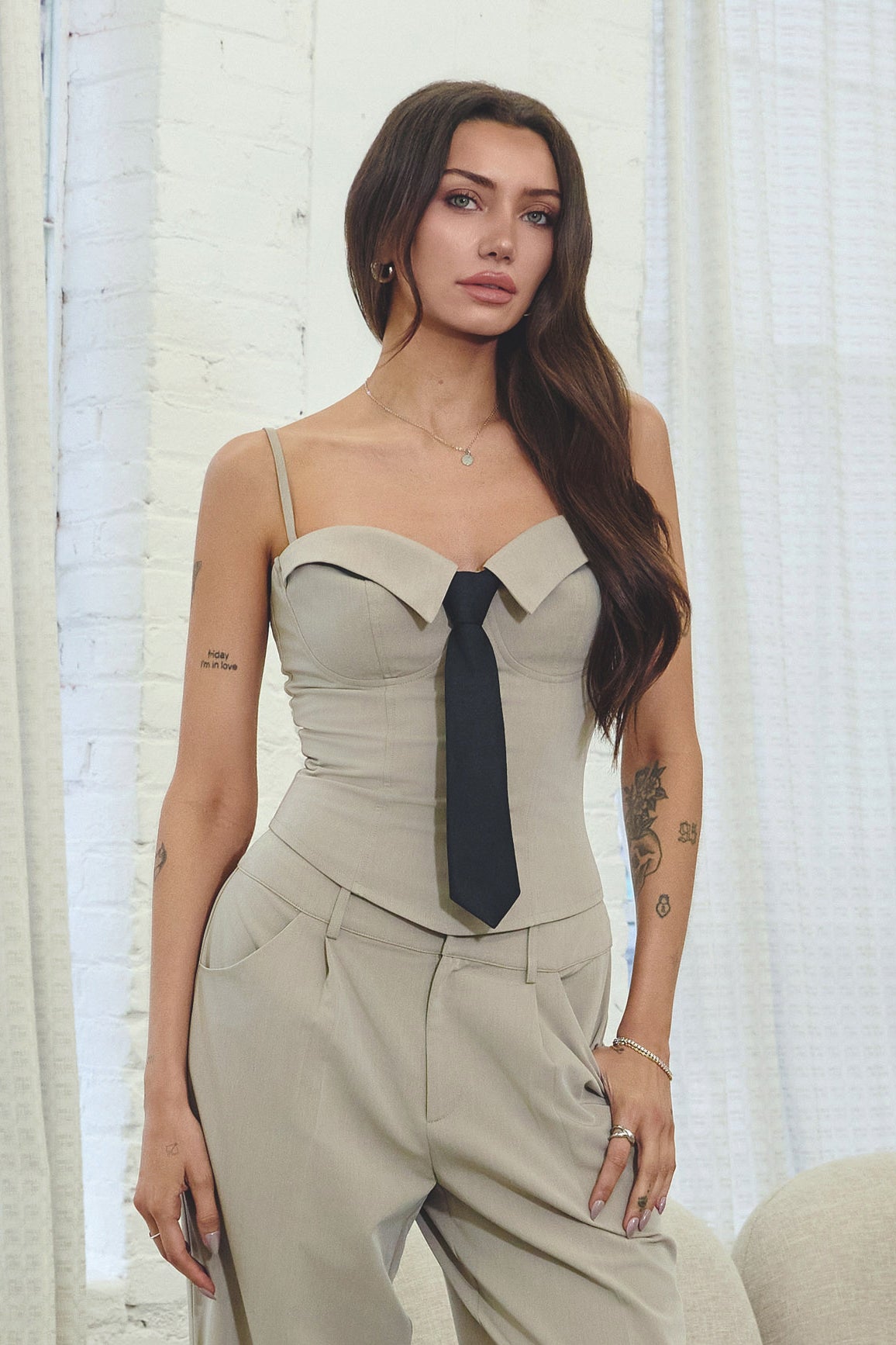 FREYA SLEEVELSS NECK-TIE CAMI TOP - TAUPE