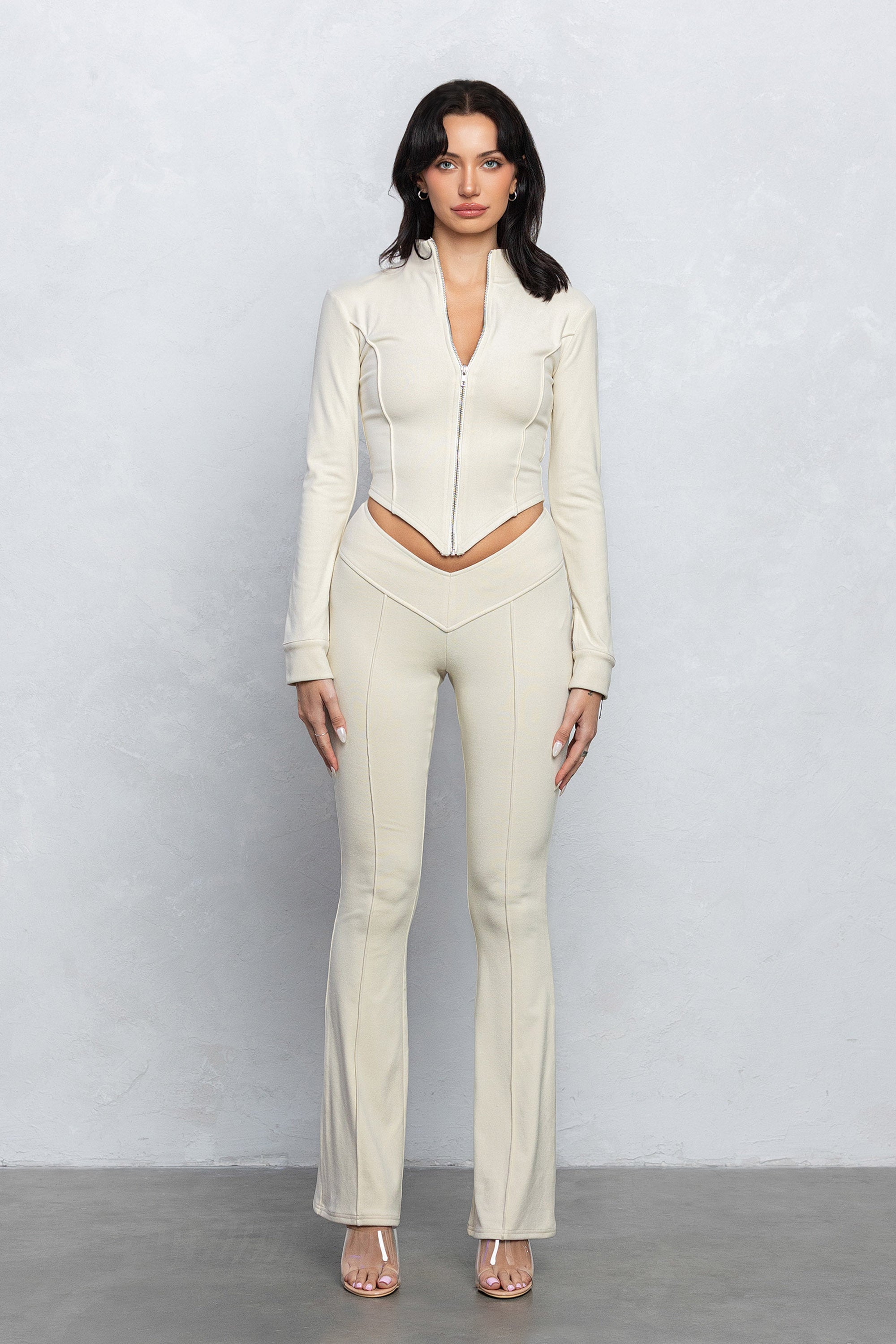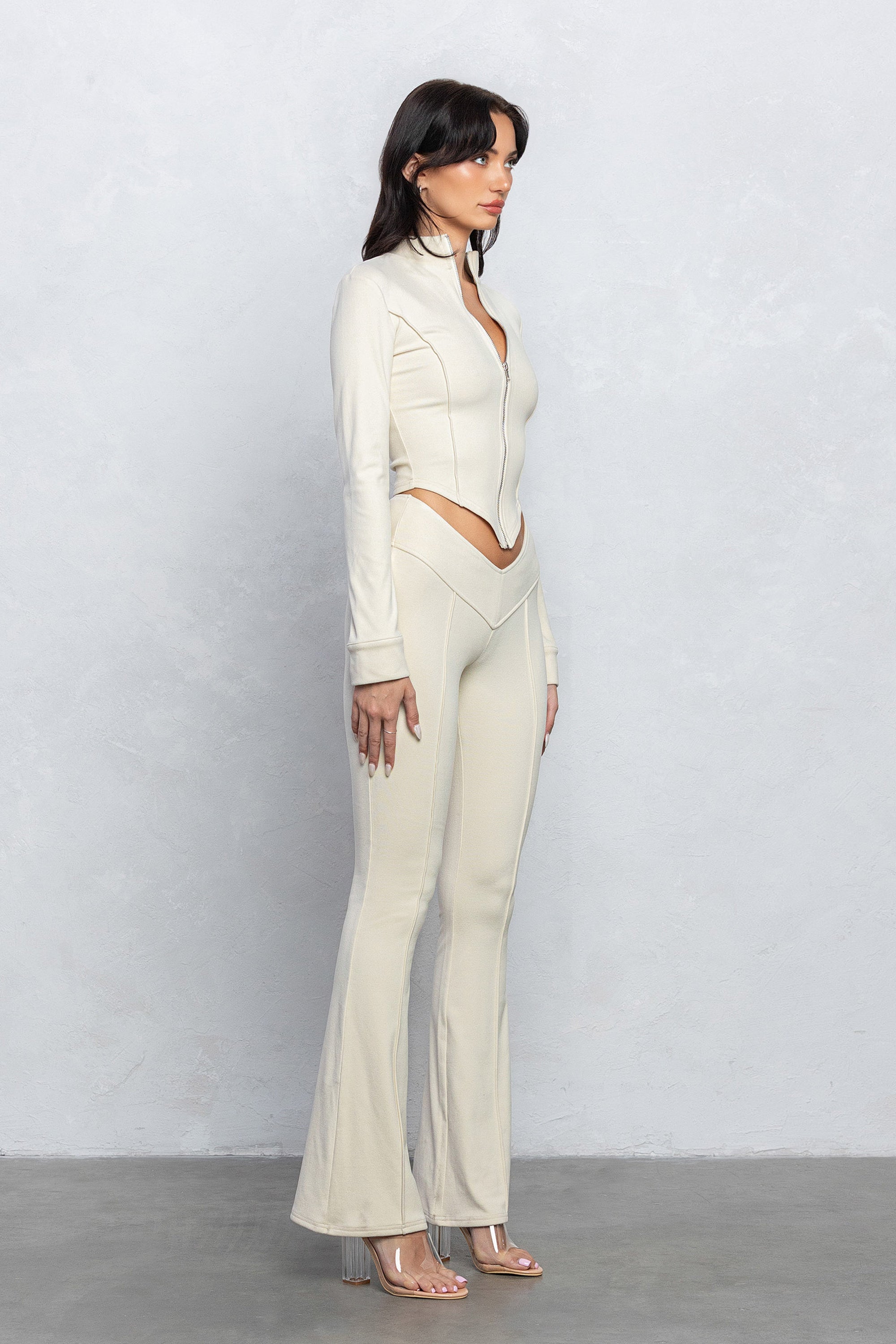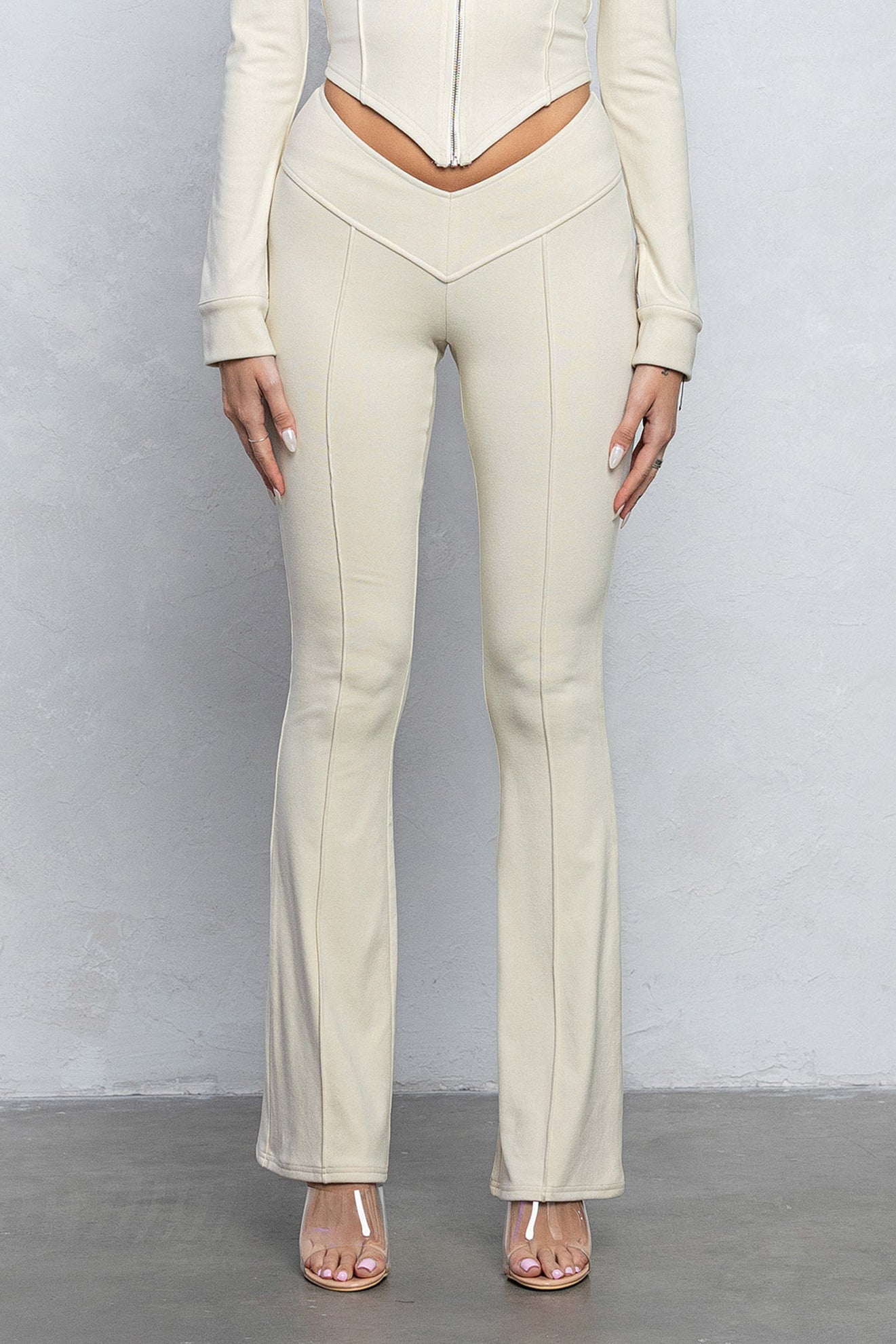 KIMI V-CUT FLARED PANTS - IVORY