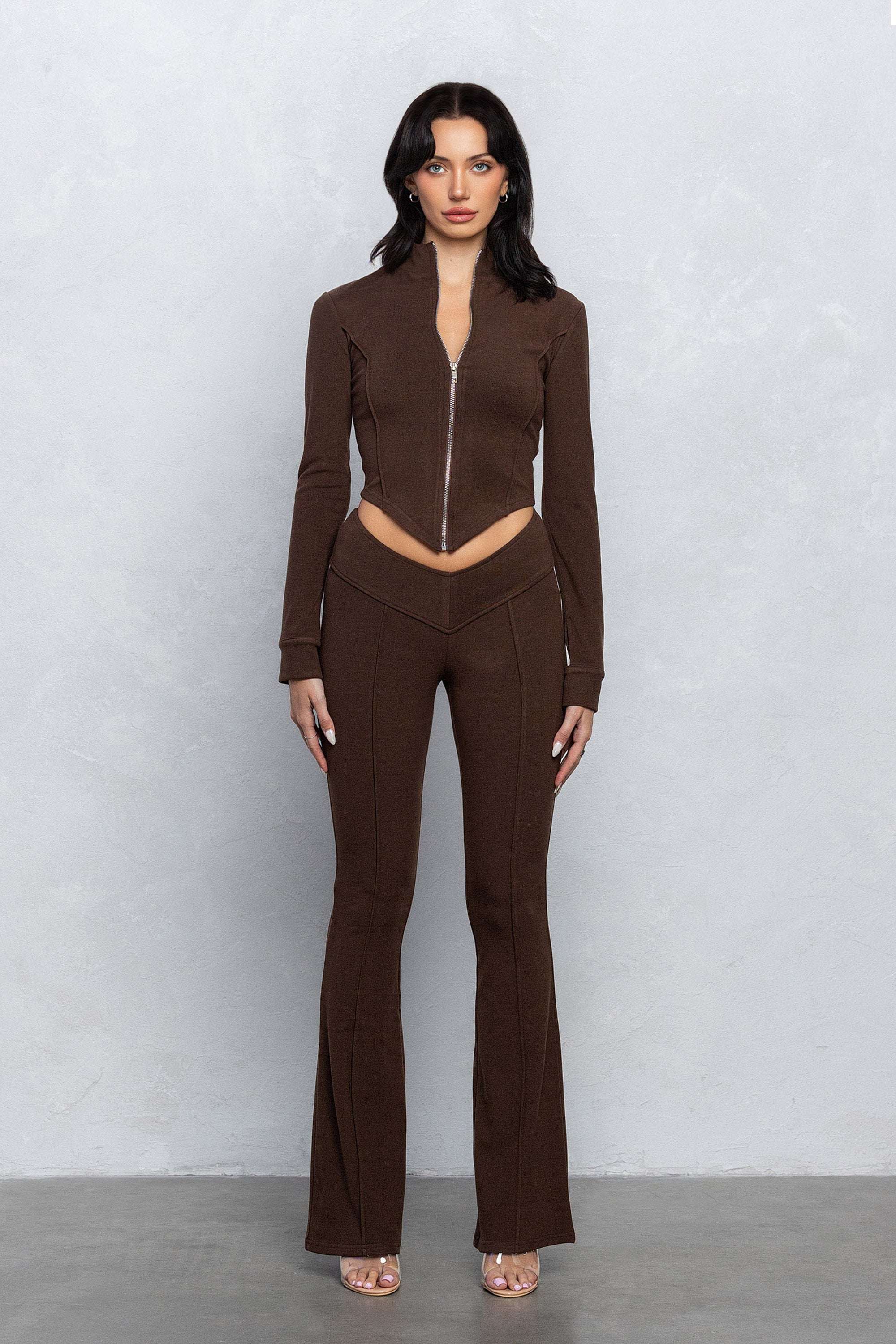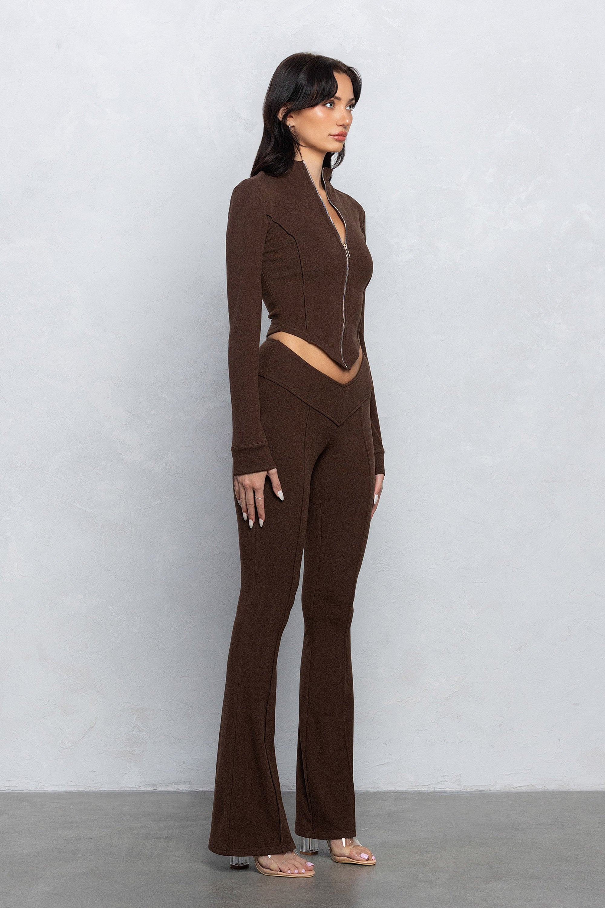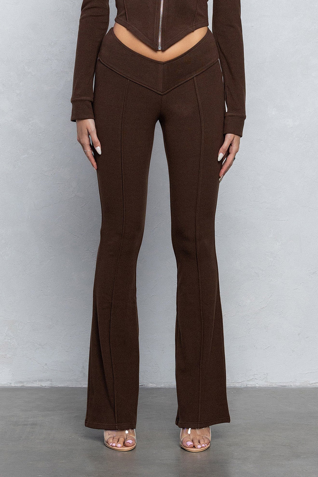 KIMI V-CUT FLARED PANTS - CHOCOLATE