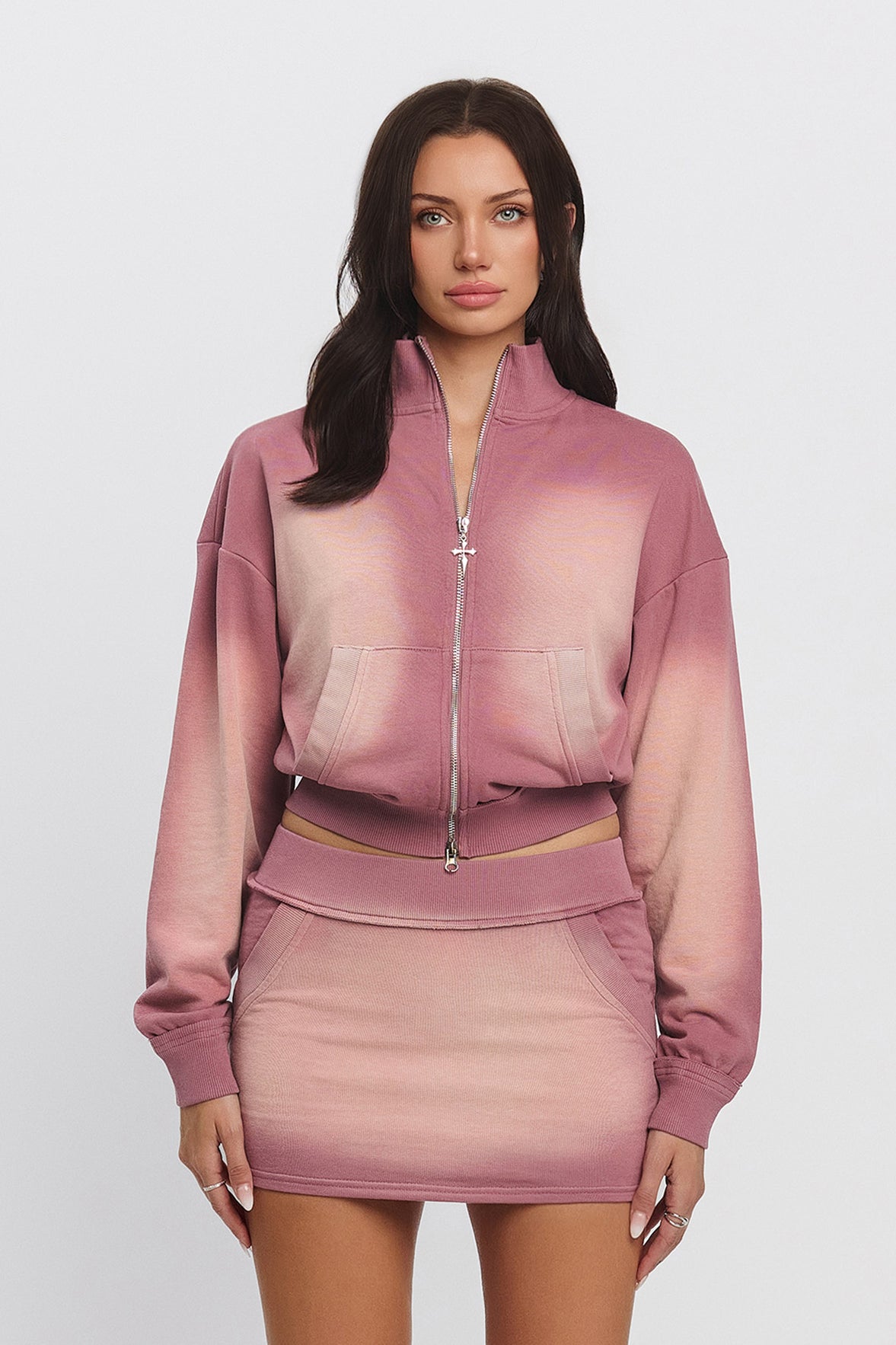 HAZE WASHED FRENCH TERRY ZIP UP JACKET - PINK