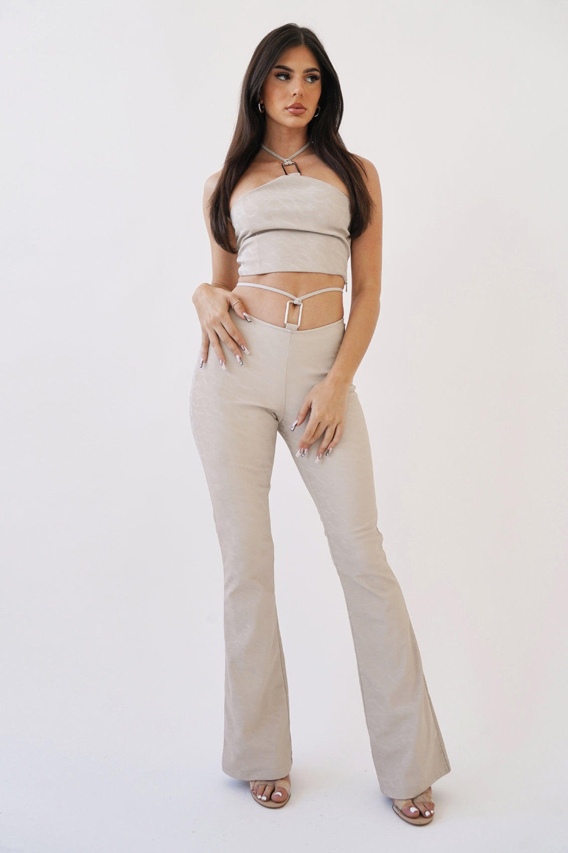 FAUX LEATHER SQUARE BUCKLE DETAIL PANTS