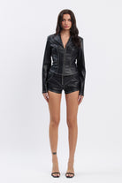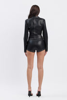 The Rebel micro shorts are made from soft, stretchy faux leather and feature bold contrast double stitching along with a front zipper closure for a sleek, edgy look.
