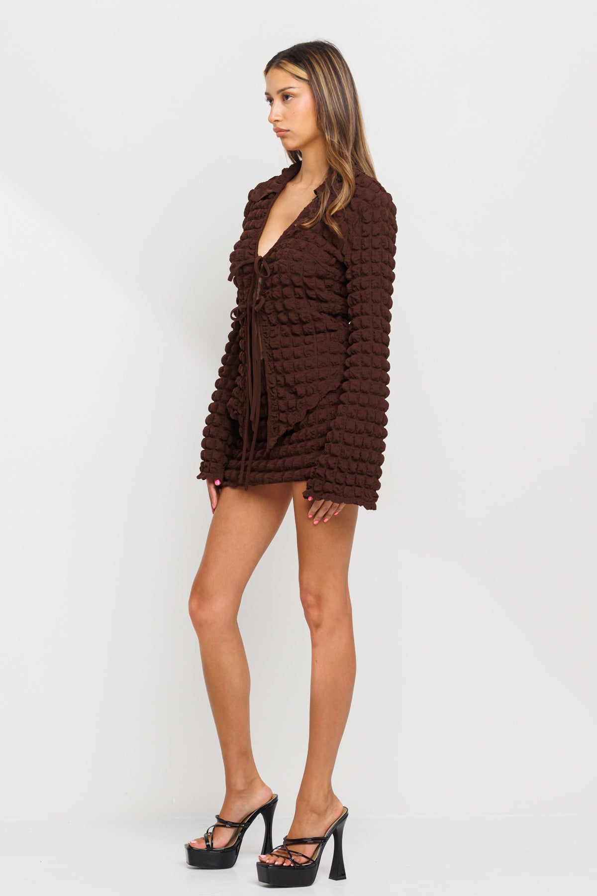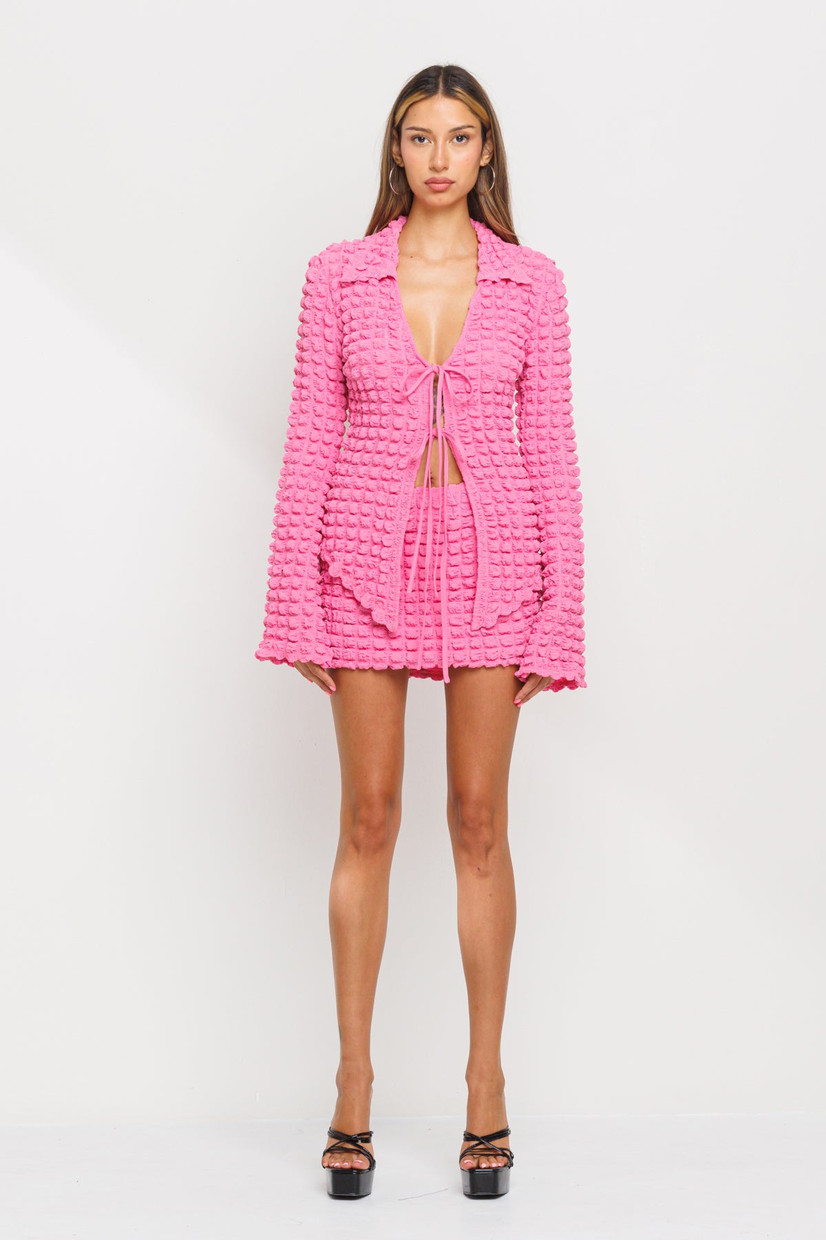 BUBBLE PUFF TIE TOP MINI SKIRT SET