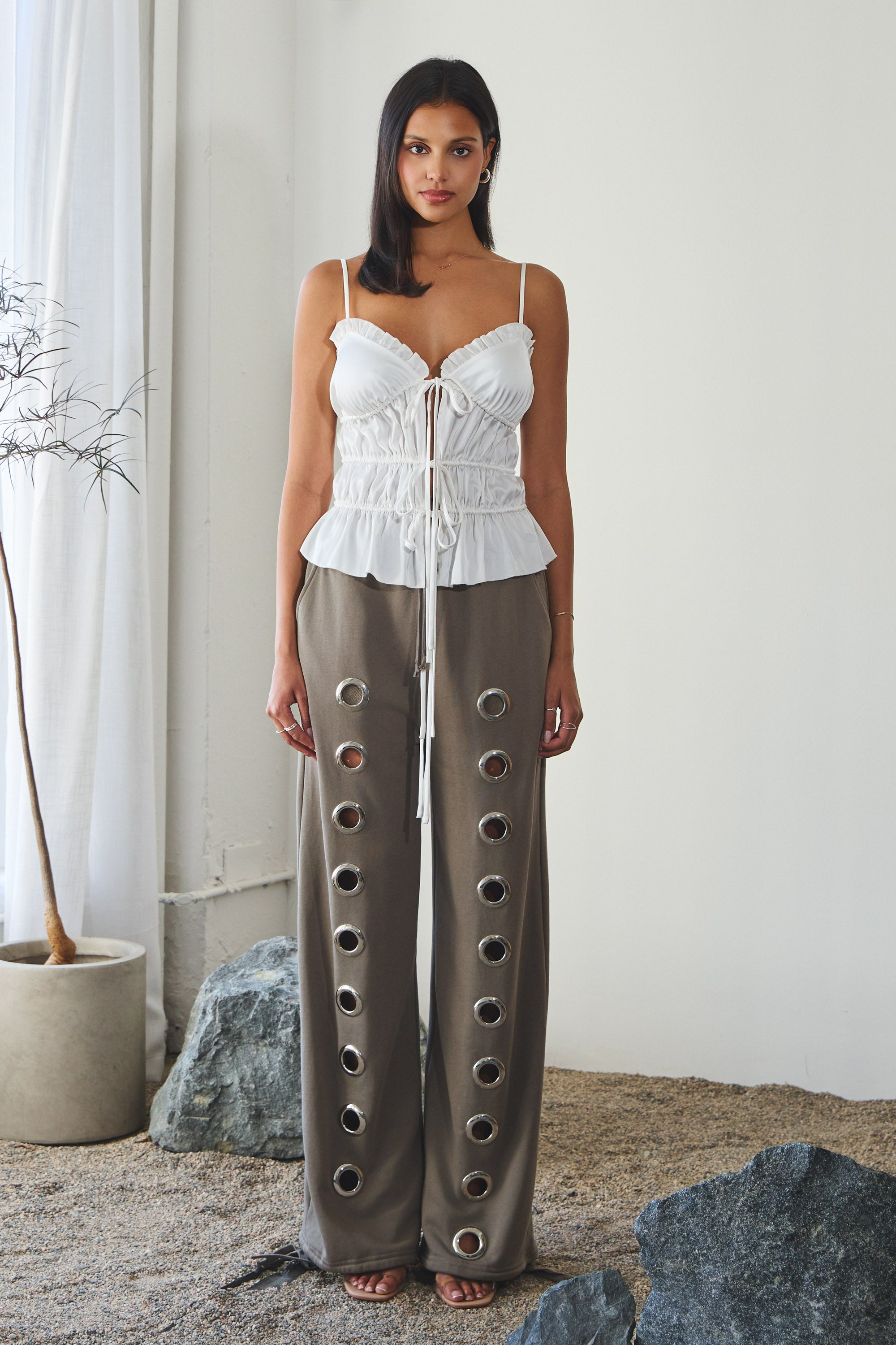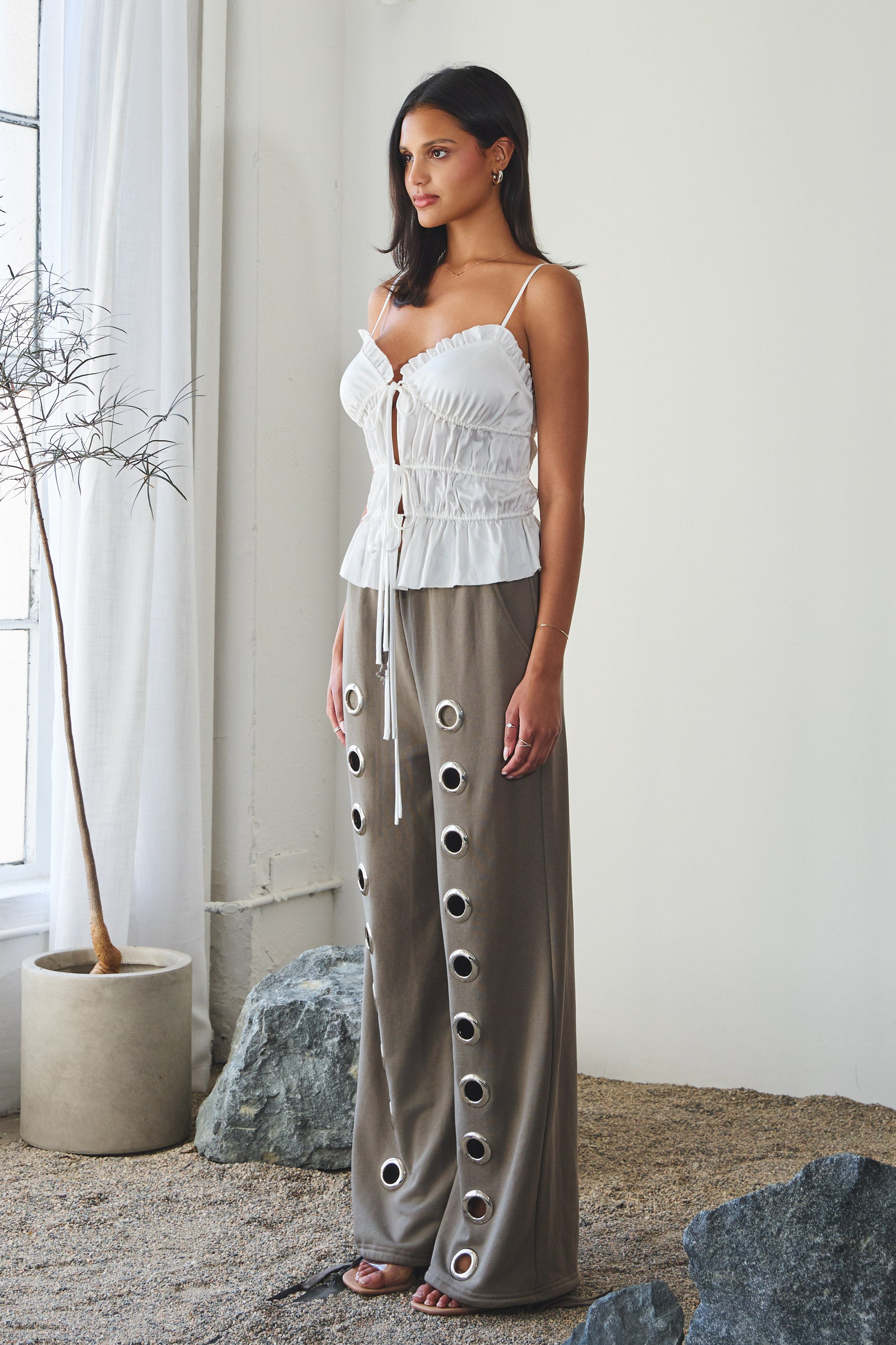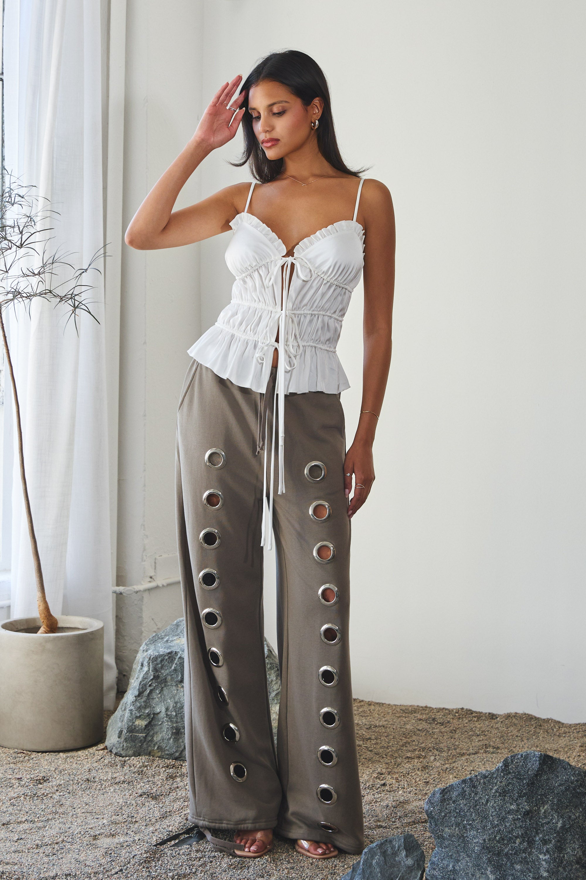 LILIANA SATIN RUCHED TIE CAMI TOP - WHITE