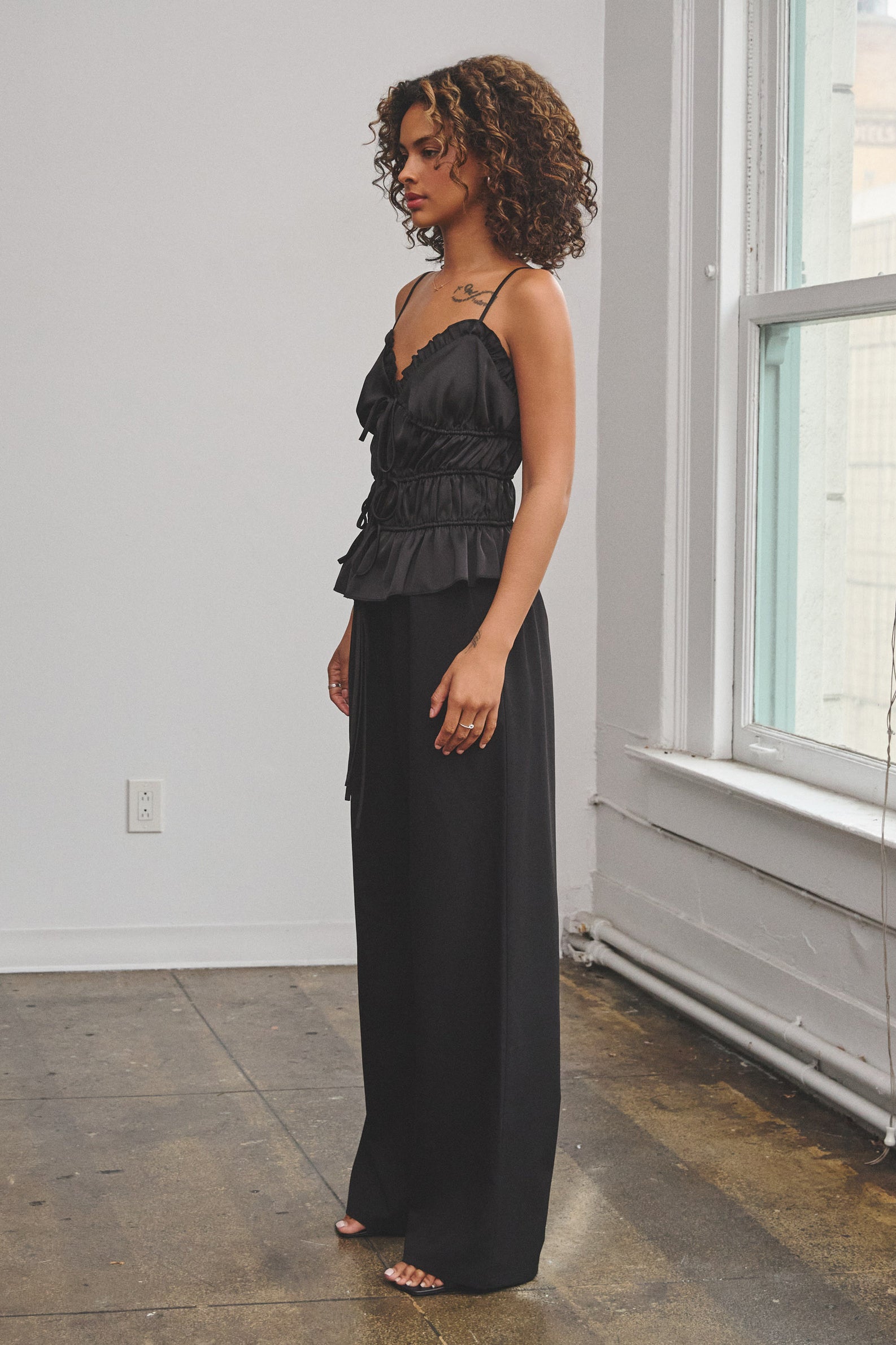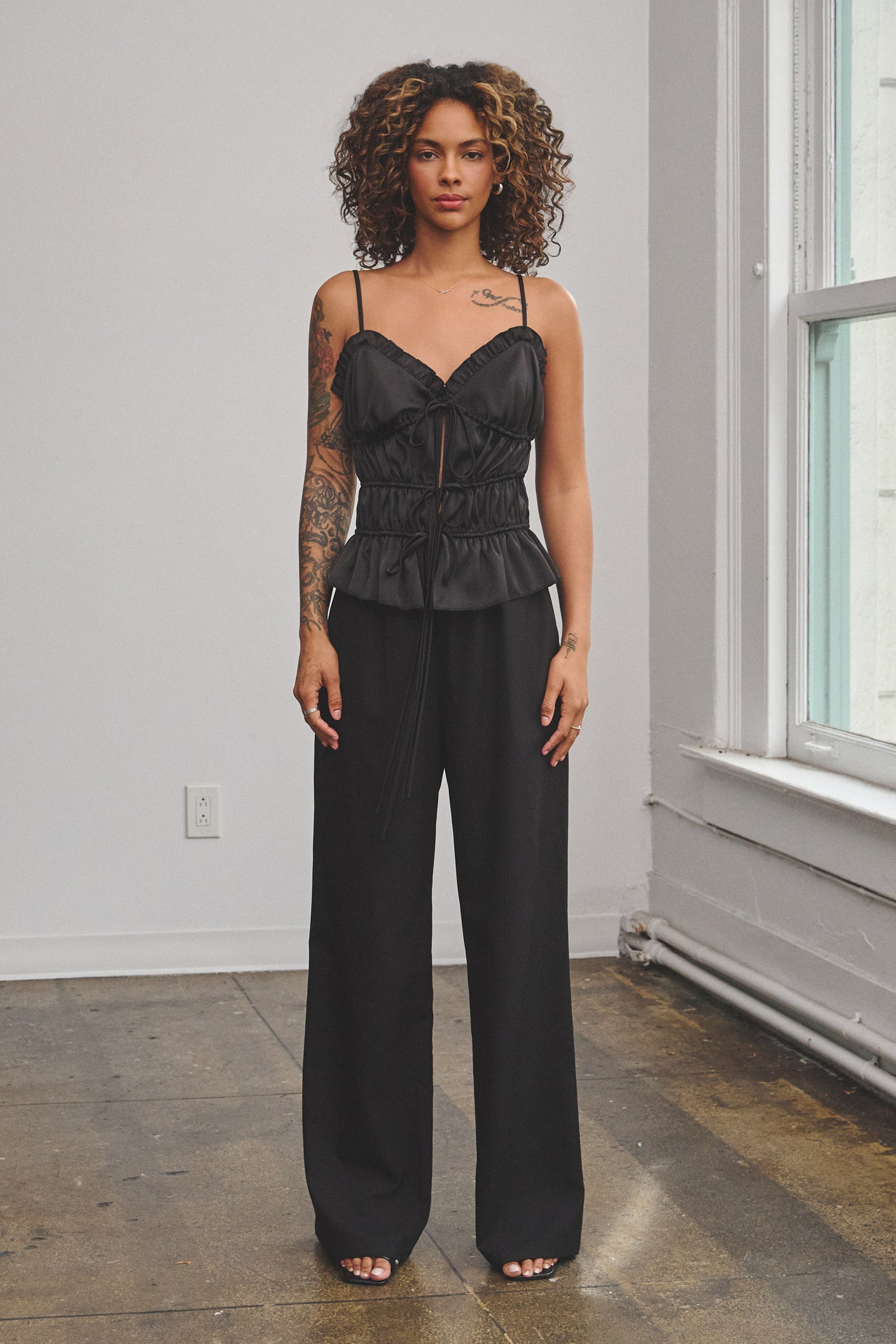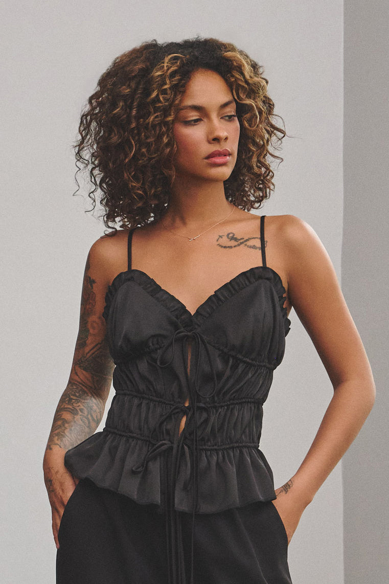 LILIANA SATIN RUCHED TIE CAMI TOP - BLACK