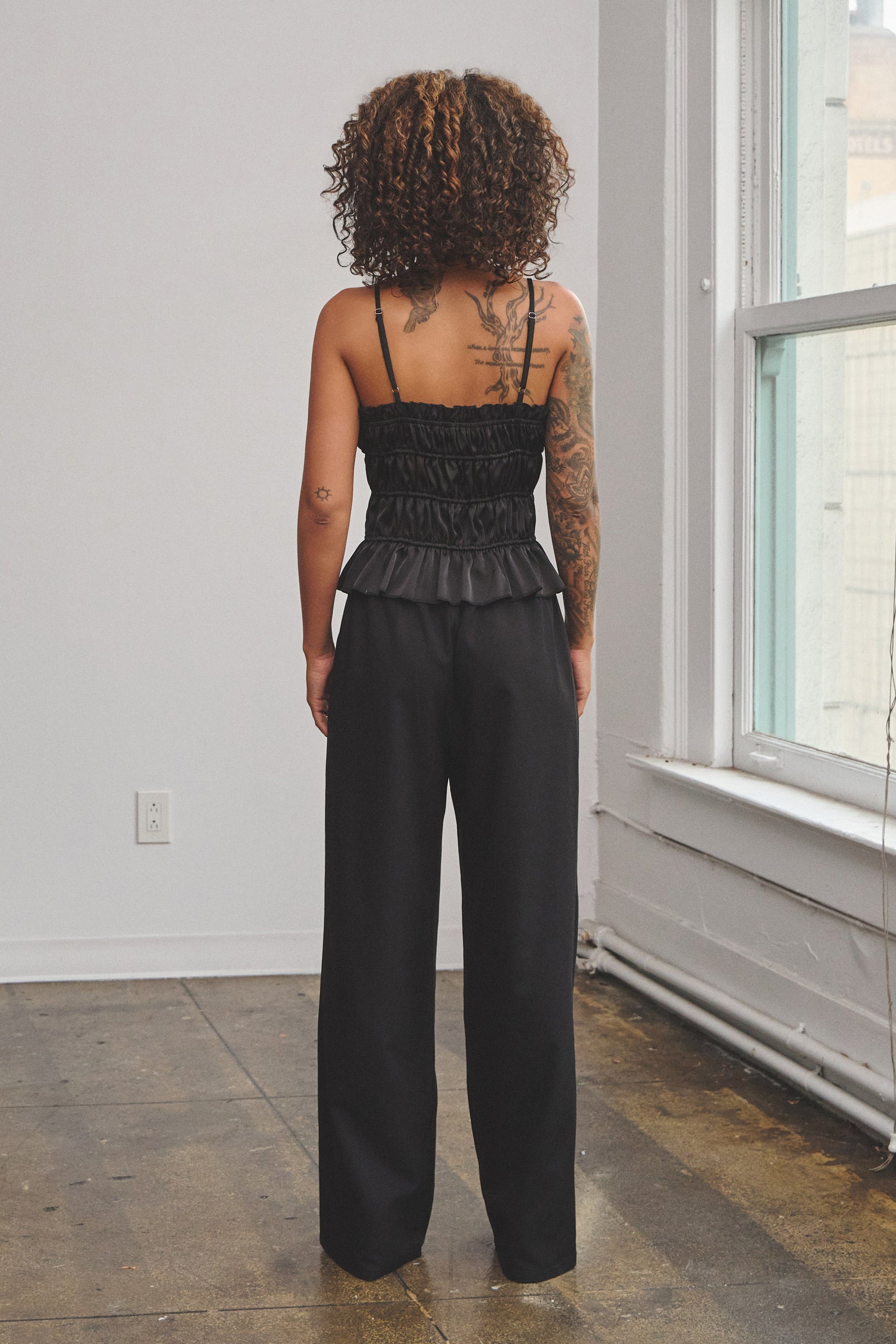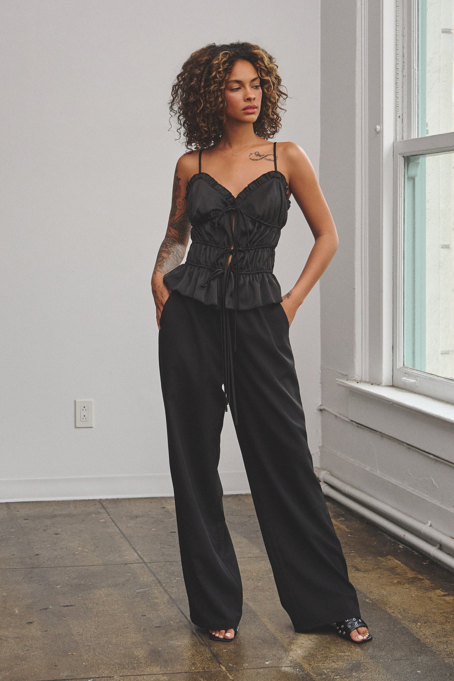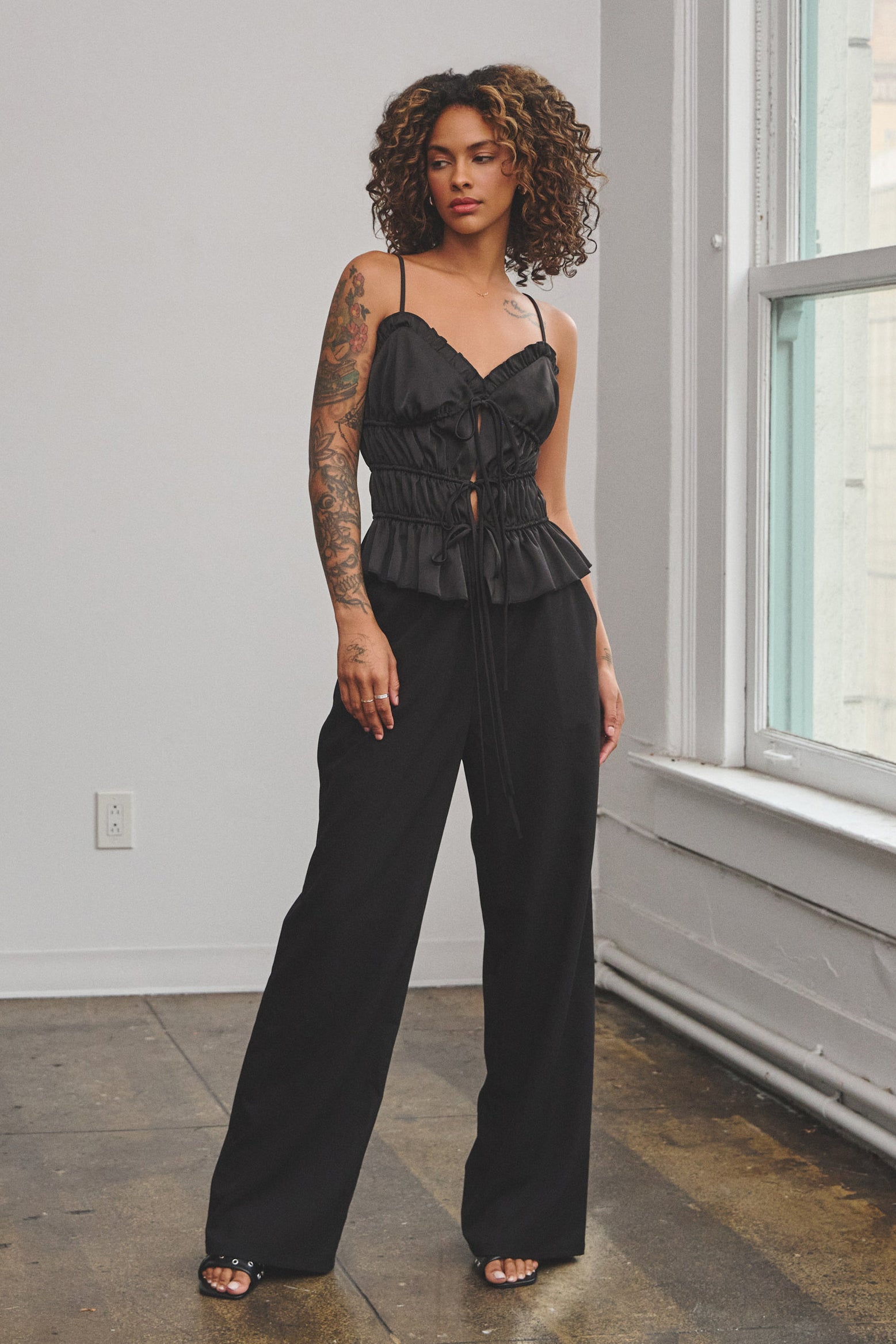 LILIANA SATIN RUCHED TIE CAMI TOP - BLACK