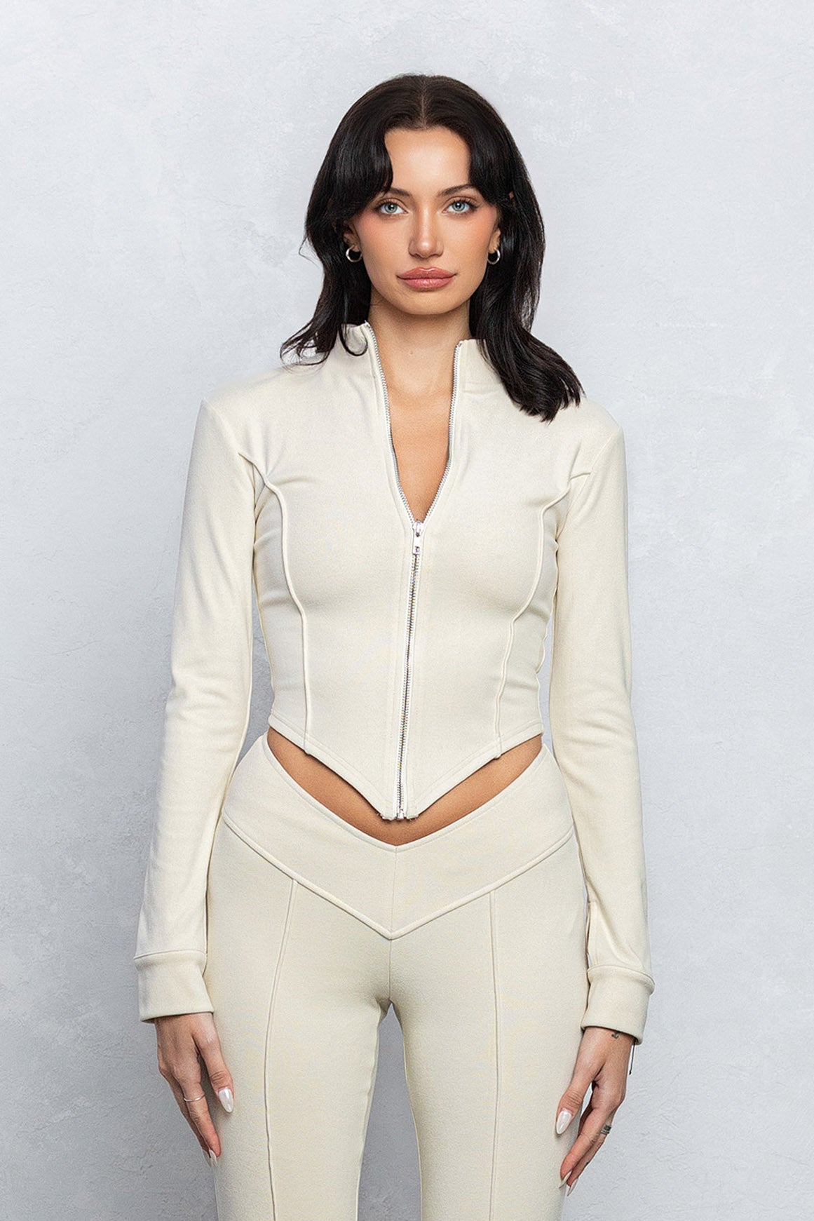 KIMI V-CUT ZIP-UP MOCK NECK TOP - IVORY