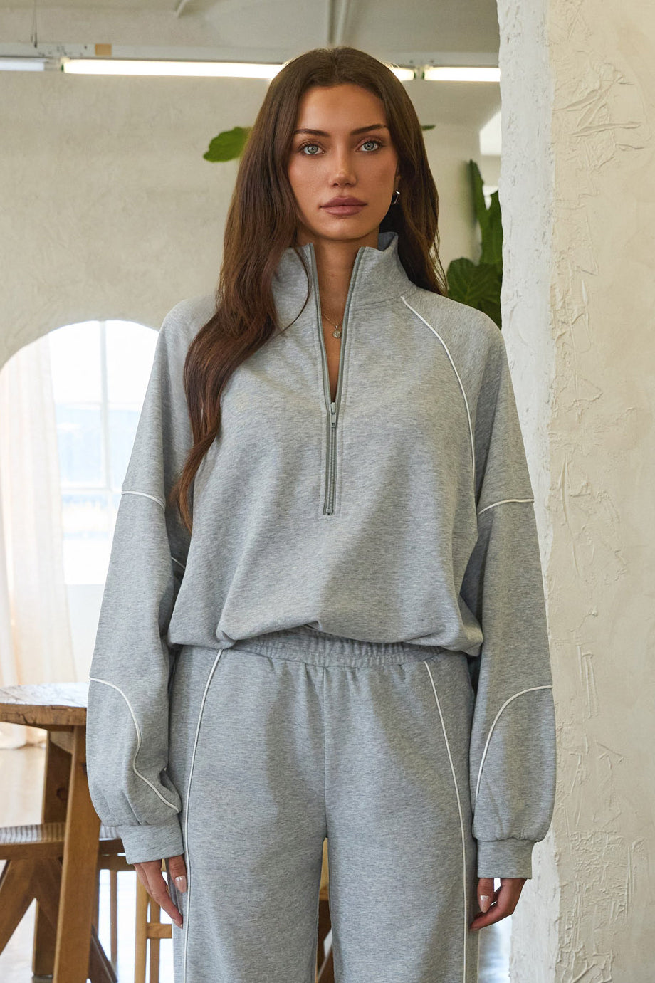 ASTA FRENCH TERRY TRACK SWEATSHIRT - HEATHER GREY