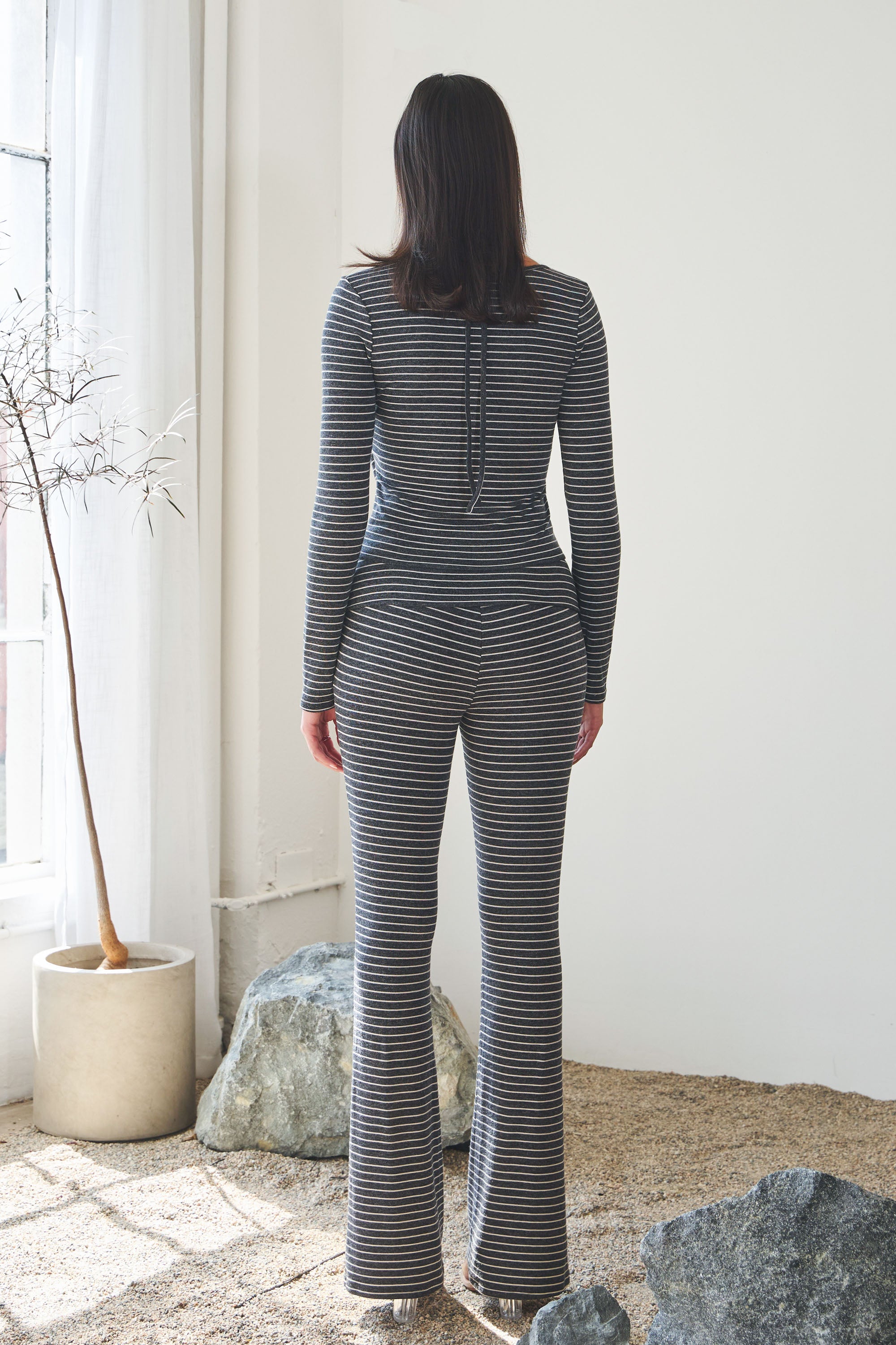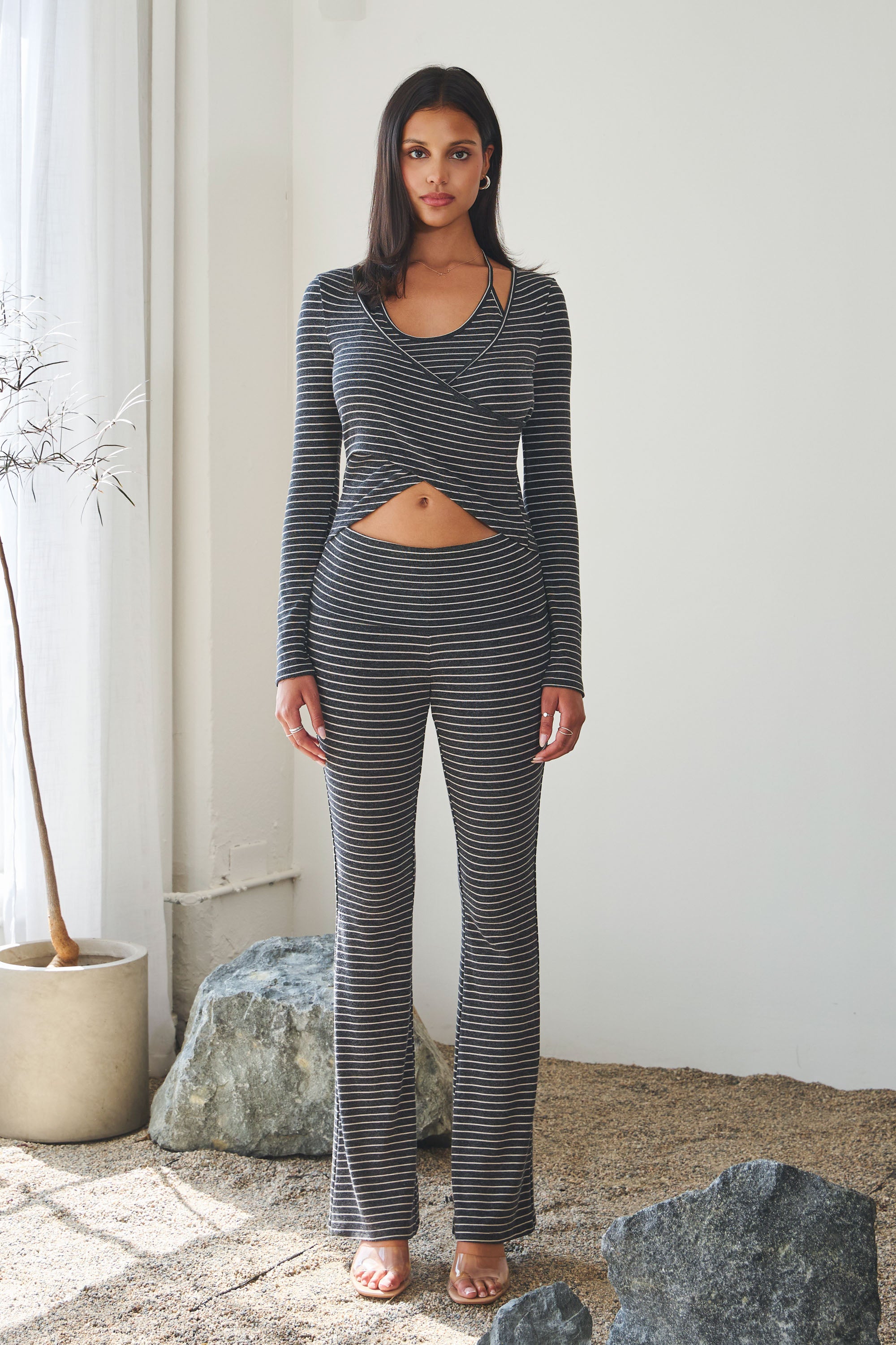 WILLOW STRIPE JERSEY LAYERED SURPLUS TOP - CHARCOAL