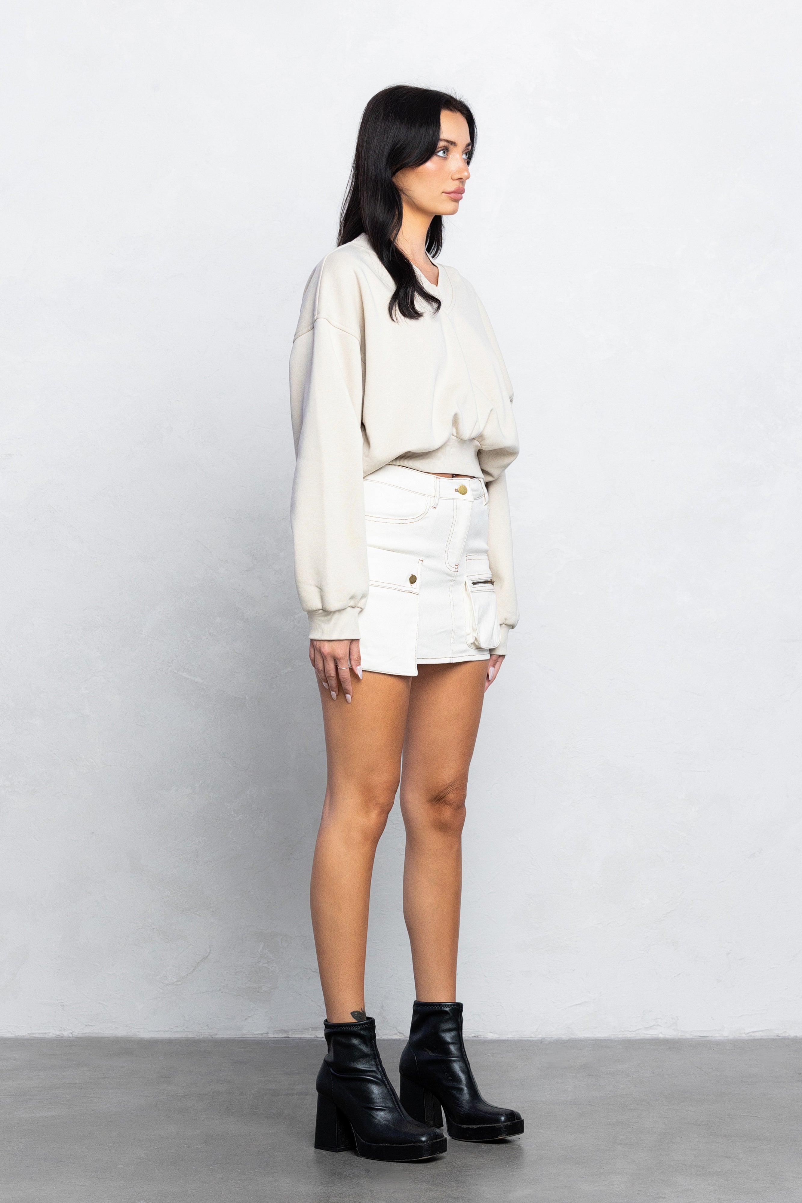 DANI POCKE DETAIL MINI SKIRT - IVORY