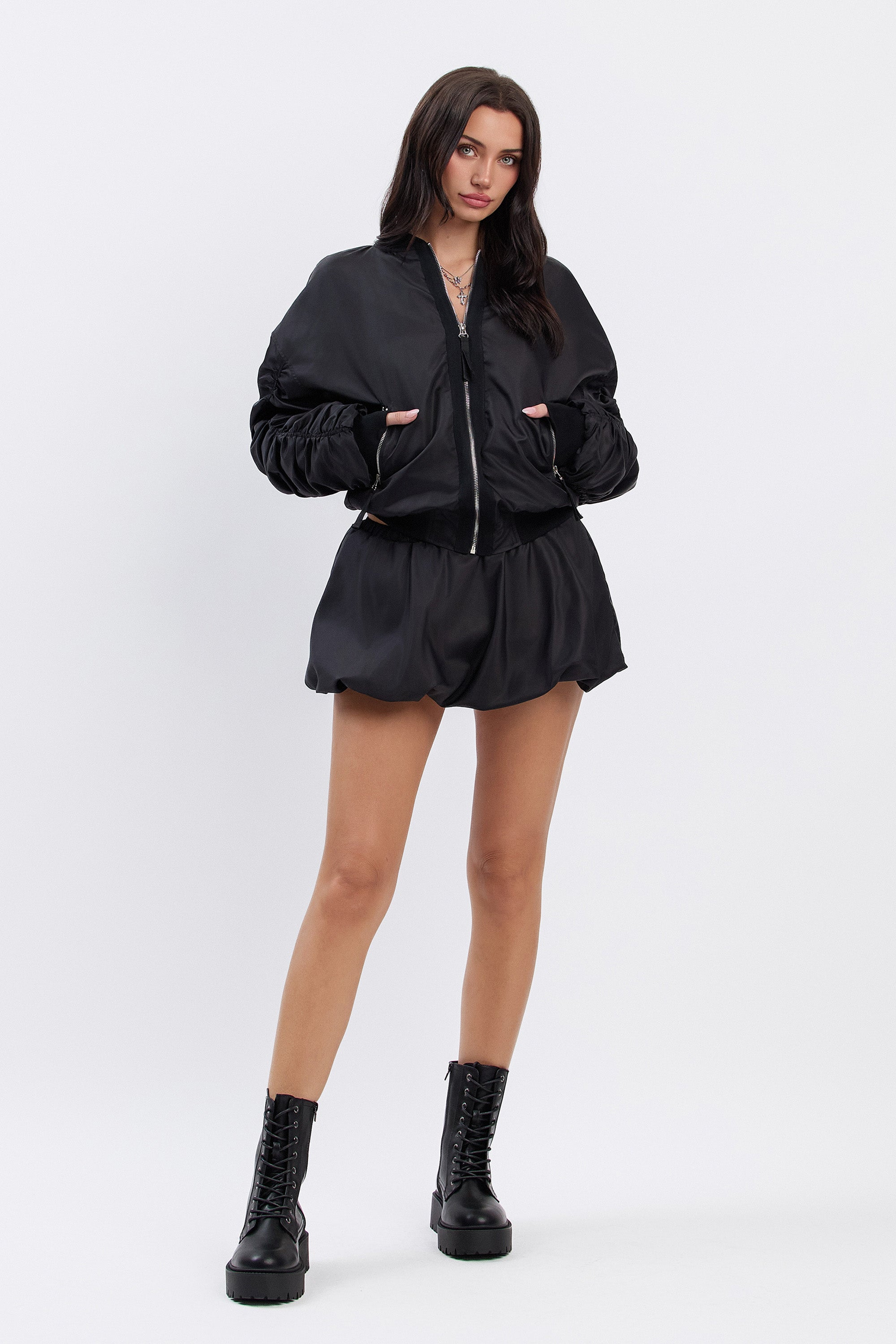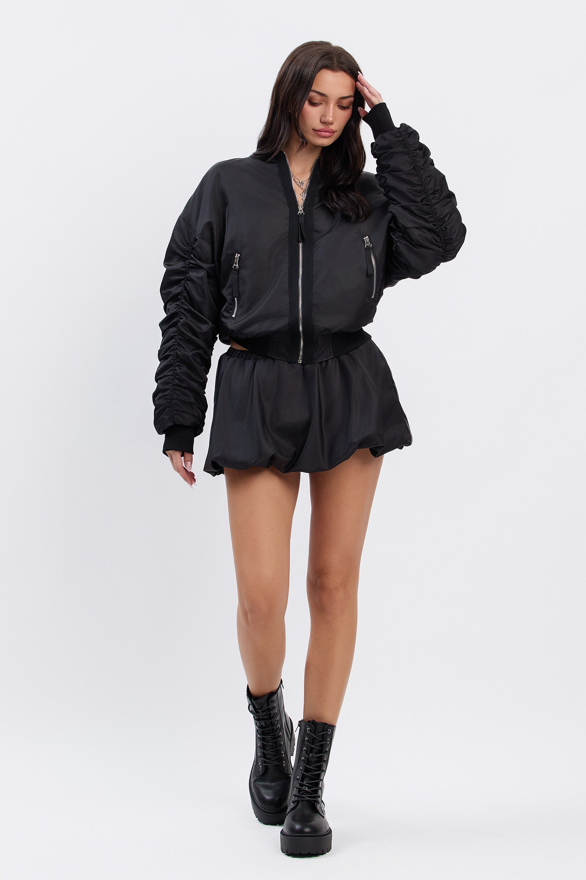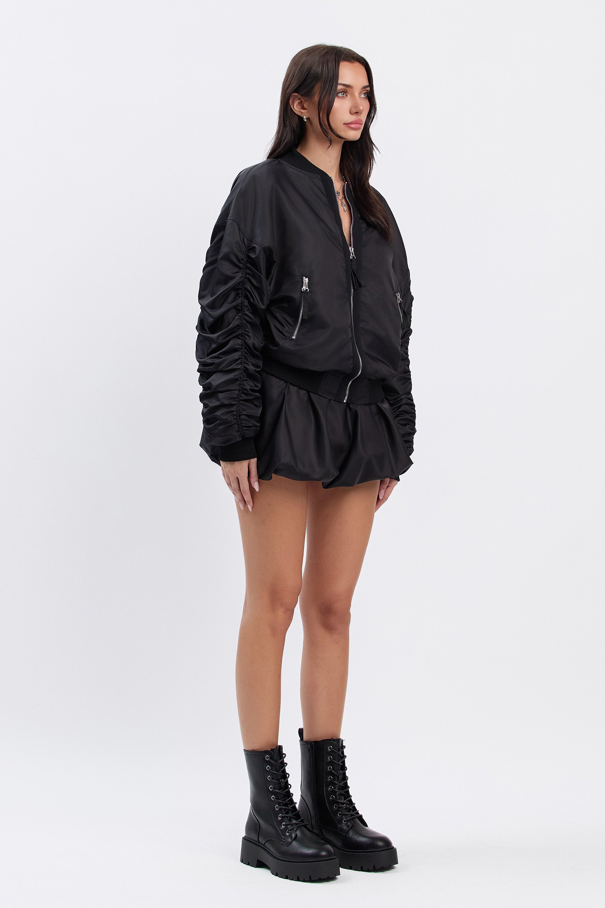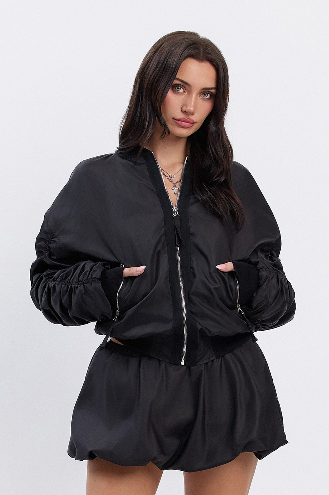 KHAITE RUCHED BOMBER JACKET - BLACK
